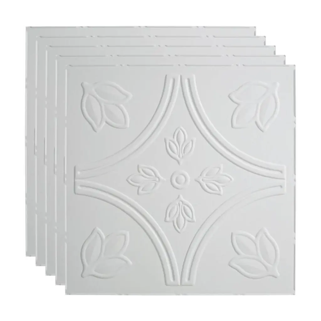 Fasäde Traditional Style 5 Decorative Vinyl 2Ft X 2Ft Lay In Ceiling Panel In Matte White (5 Pack) - 5 Pack - Matte White