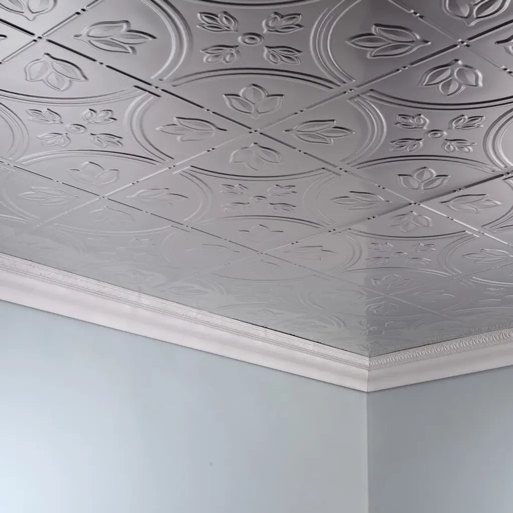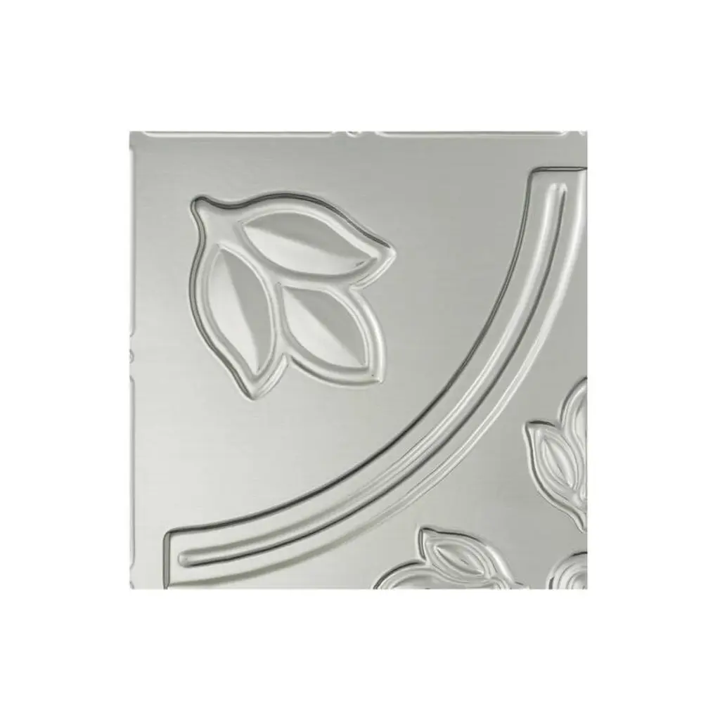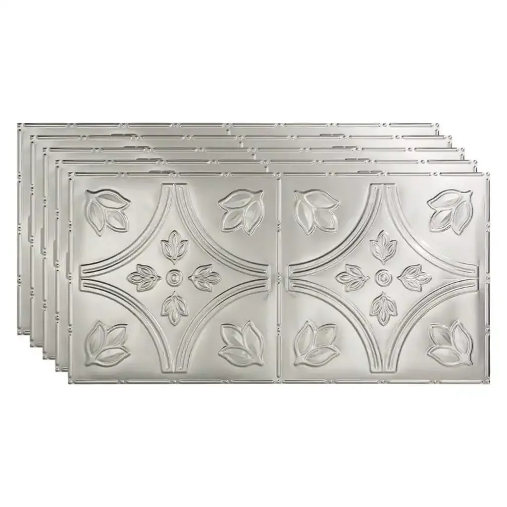 Fasäde Traditional Style 5 Decorative Vinyl 2Ft X 4Ft Glue Up Ceiling Panel In Brushed Aluminum (5 Pack) - 5 Pack - Brushed Aluminum