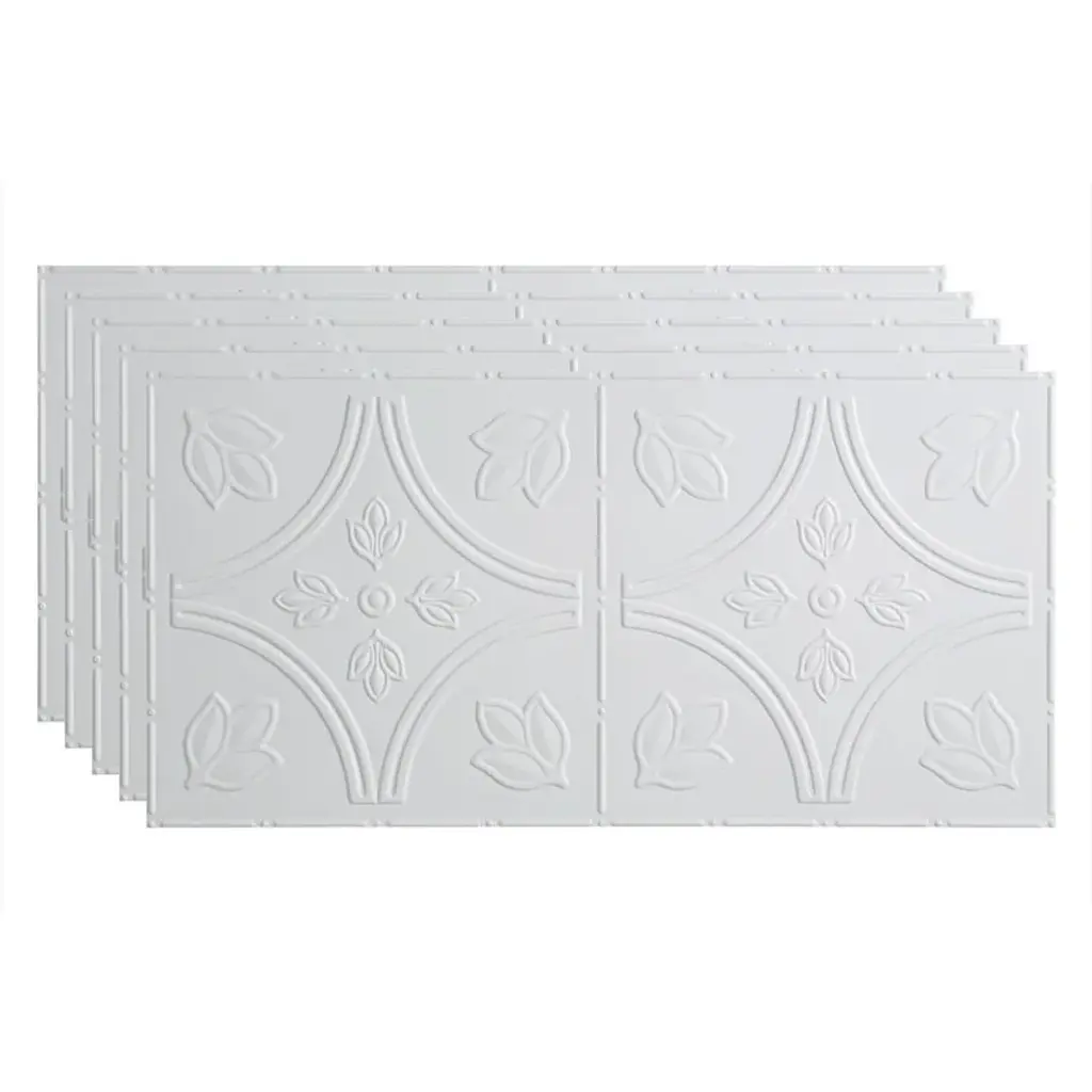 Fasäde Traditional Style 5 Decorative Vinyl 2Ft X 4Ft Glue Up Ceiling Panel In Gloss White (5 Pack) - 5 Pack - Gloss White