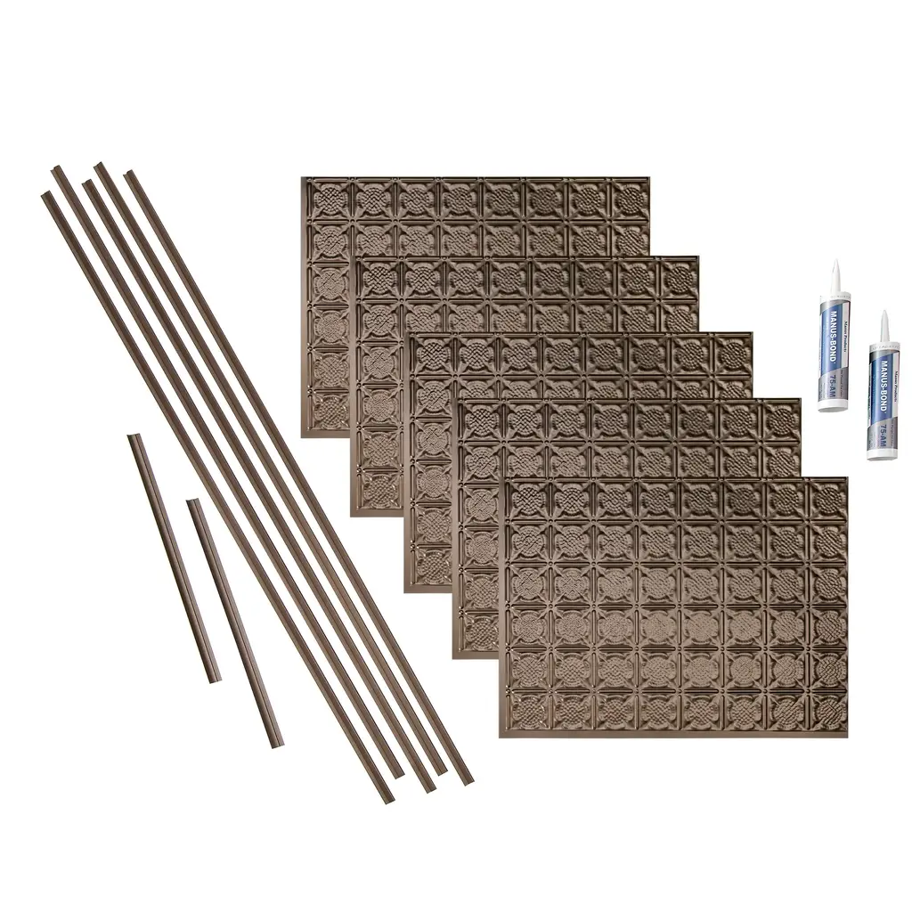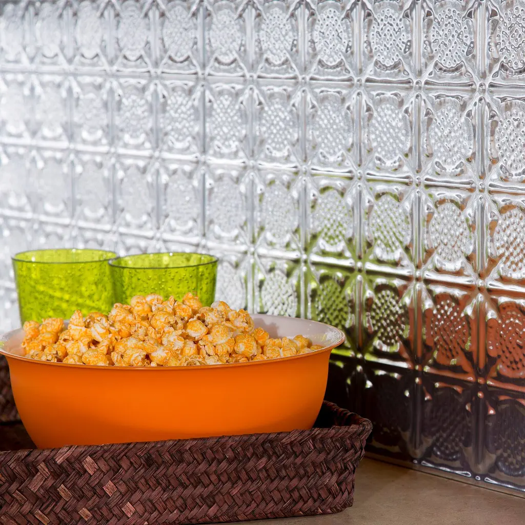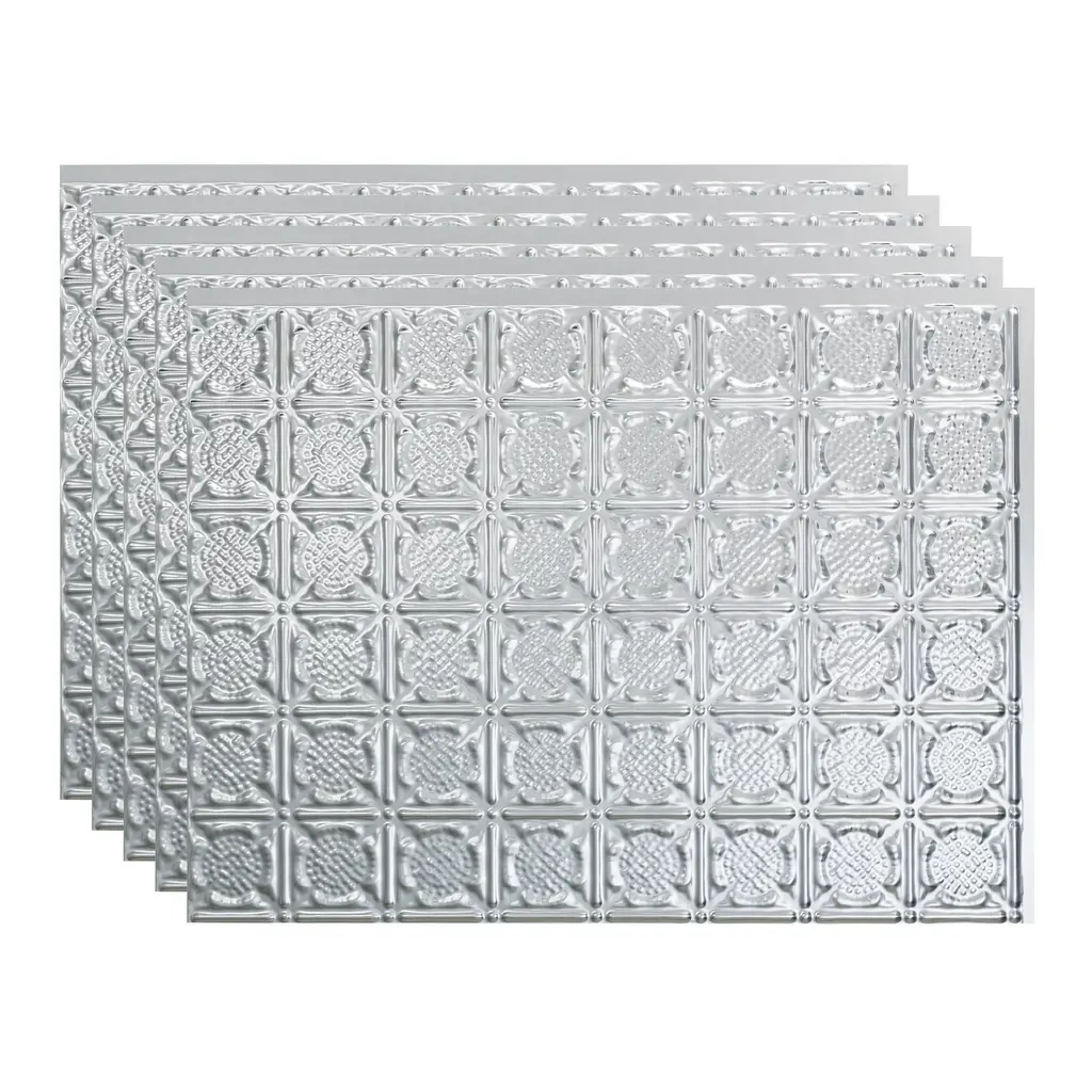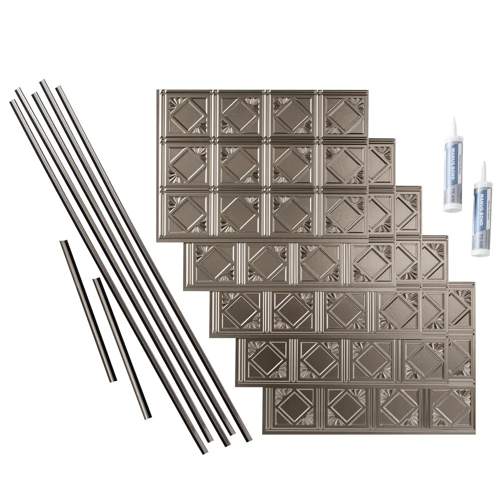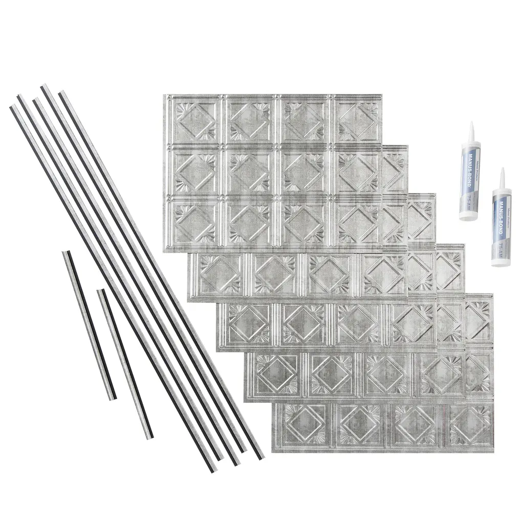 Fasäde Traditional Style 6 Decorative Vinyl Backsplash Panel - 15 Sq Ft Kit - Brushed Aluminum