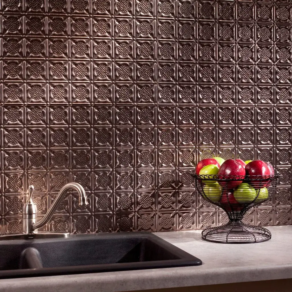 Fasäde Traditional Style 6 Decorative Vinyl Backsplash Panel - 15 Sq Ft Kit - Brushed Nickel