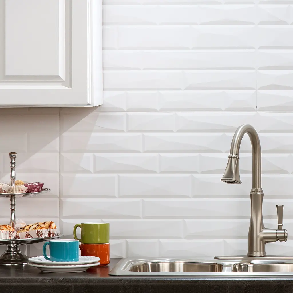Fasäde Vista Decorative Vinyl Backsplash Panel - 15 Sq Ft Kit - Matte White