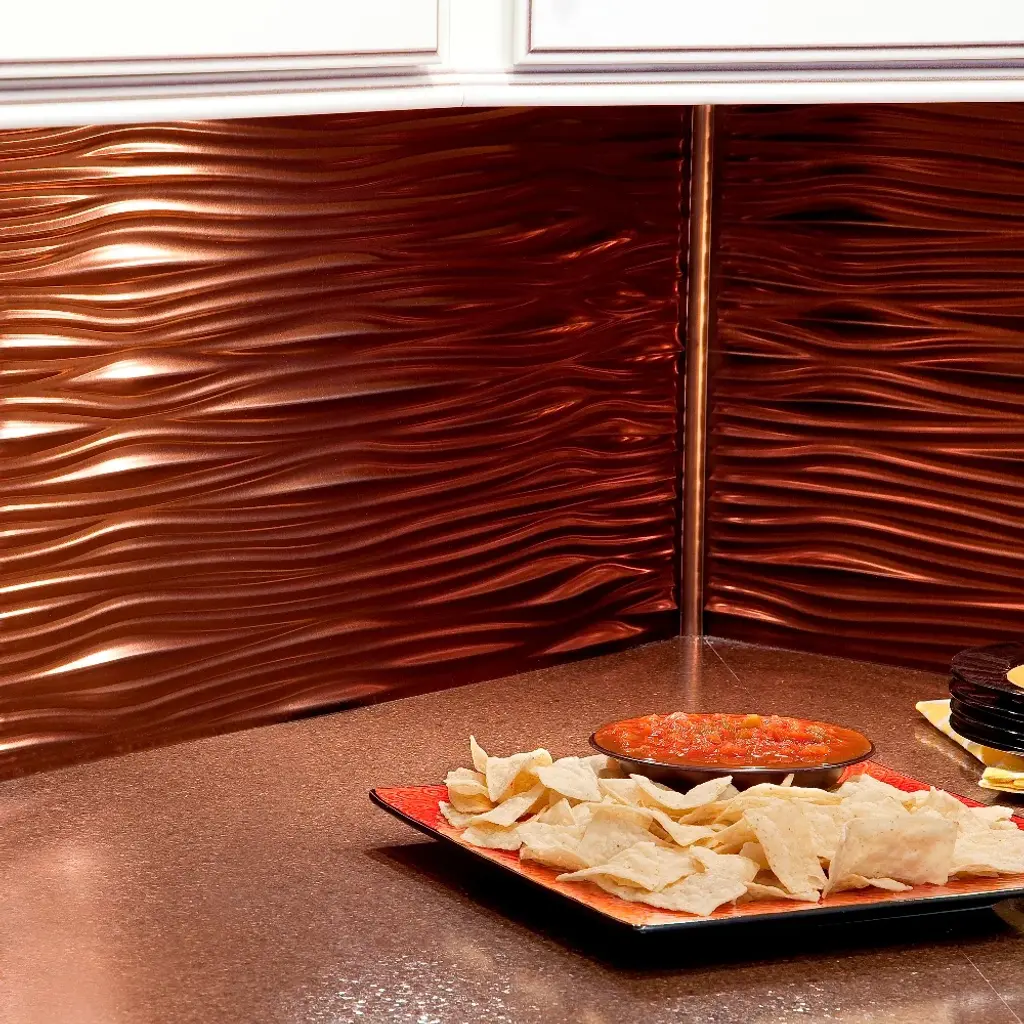 Fasäde Waves Decorative Vinyl Backsplash Panel - 15 Sq Ft Kit - Oil Rubbed Bronze