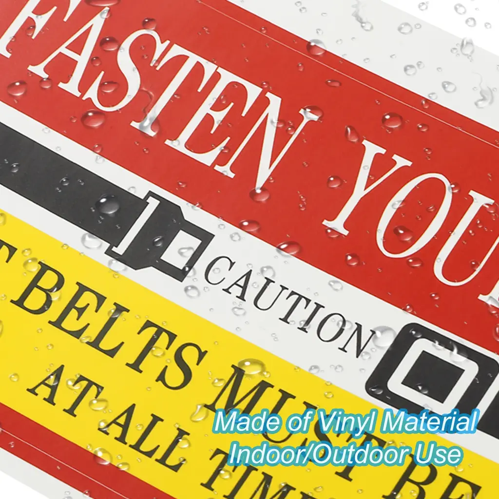 Fasten Your Belts Stickers Labels Waterproof Adhesive Caution Sign Decals - White Black Red Yellow - 18 Pcs