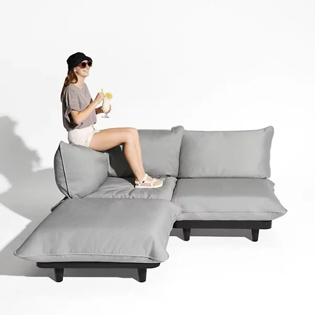 The Fatboy® Medium Paletti Set is ready for comfortable lounging and is designed to last. Fashioned after pallets with interchangeable components, this outdoor-friendly furnishing can be reconfigured into different formations based on your scenario. The cushioning is ultra-comfortable and plush, all while maintaining stain resistance. Spills can be cleaned via a damp cloth or a pressure hose for quick upkeep. The steel backrest is corrosion-resistant, while the upholstery is water-resistant. It's best to store Paletti during harsh winter months. It benefits from coverage during heavy rainfall.