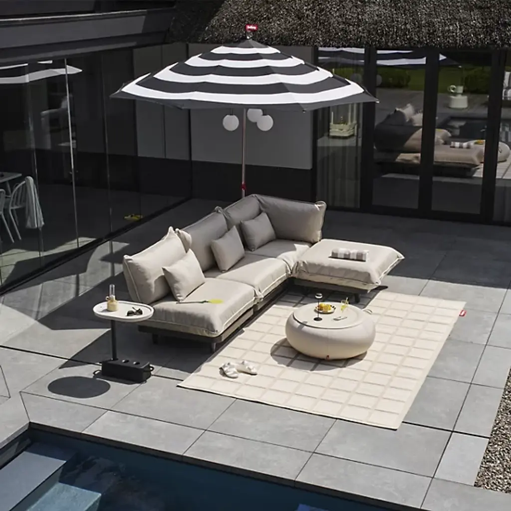The Fatboy® Medium Paletti Set is ready for comfortable lounging and is designed to last. Fashioned after pallets with interchangeable components, this outdoor-friendly furnishing can be reconfigured into different formations based on your scenario. The cushioning is ultra-comfortable and plush, all while maintaining stain resistance. Spills can be cleaned via a damp cloth or a pressure hose for quick upkeep. The steel backrest is corrosion-resistant, while the upholstery is water-resistant. It's best to store Paletti during harsh winter months. It benefits from coverage during heavy rainfall.