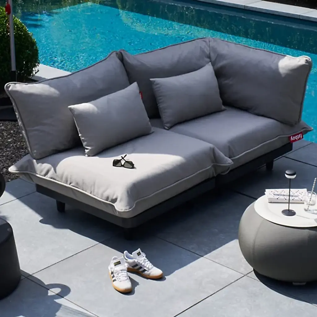 The Fatboy® Medium Paletti Set is ready for comfortable lounging and is designed to last. Fashioned after pallets with interchangeable components, this outdoor-friendly furnishing can be reconfigured into different formations based on your scenario. The cushioning is ultra-comfortable and plush, all while maintaining stain resistance. Spills can be cleaned via a damp cloth or a pressure hose for quick upkeep. The steel backrest is corrosion-resistant, while the upholstery is water-resistant. It's best to store Paletti during harsh winter months. It benefits from coverage during heavy rainfall.