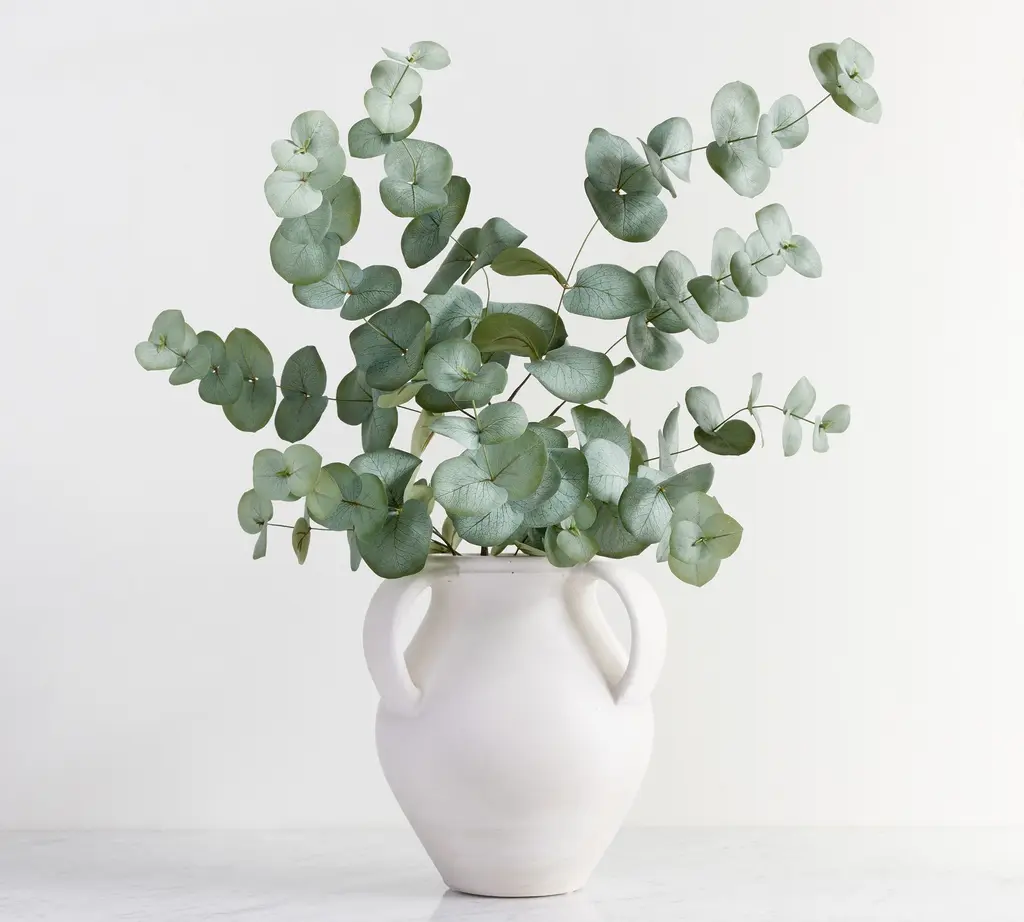 Known for its cool tones and earthy texture, we love how eucalyptus freshens up a room. Carefully assembling each piece by hand, our take on this botanical is eternal so you can enjoy it year-round. Place it in a vase to give a table dimension or along a mantel for a layered look.
