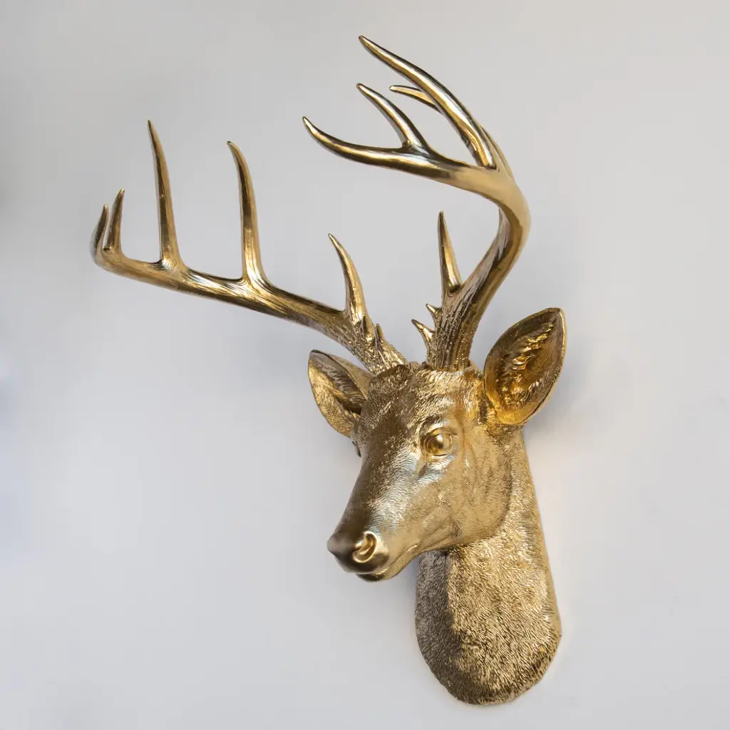 Create an eclectic gallery wall with the Point Stag Wall-Mount Faux Deer Bust With Antlers from Near and Deer. Less menacing than the real thing, the Point Stag features a contemporary finish for a trendy addition to your space. The Near and Deer brand seeks to revamp and develop traditional decor conventions to push the boundaries of a modern look.Faux deer bust with 14-point antlersColor: Material: ResinDimensions: W 18.25" x D 13" x H 21"
