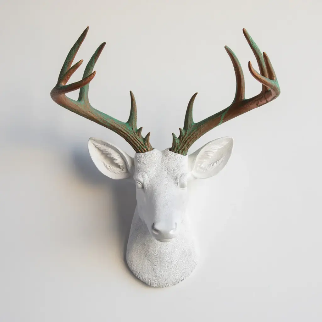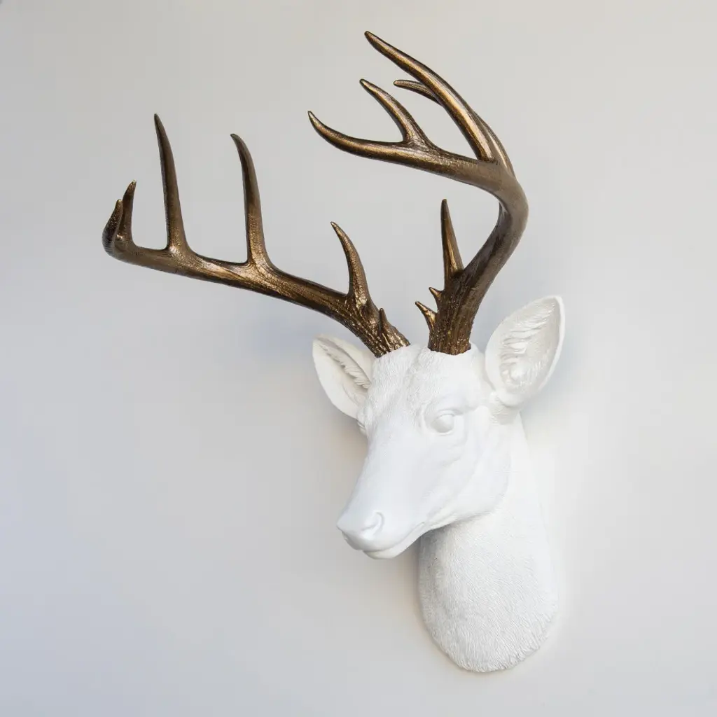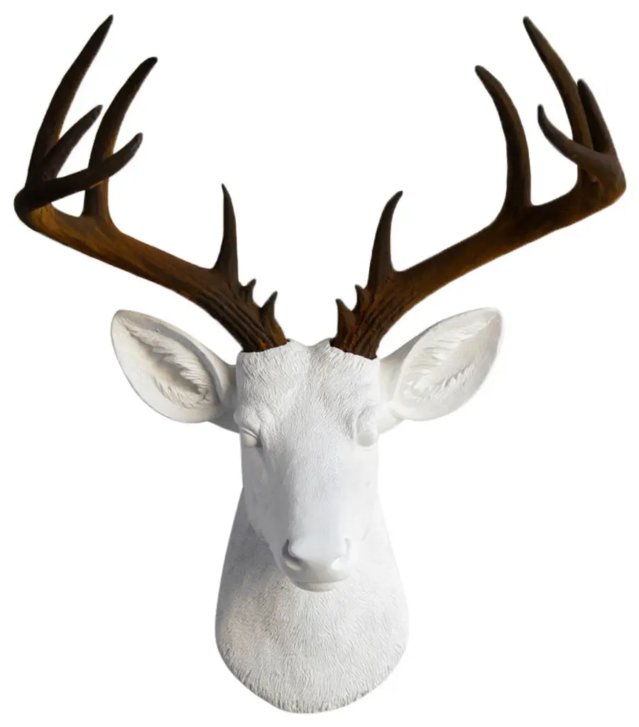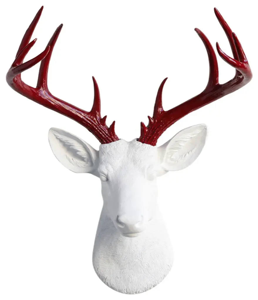 Faux Deer Head Wall Mount 14 Point Stag Head Antlers, White And Rust