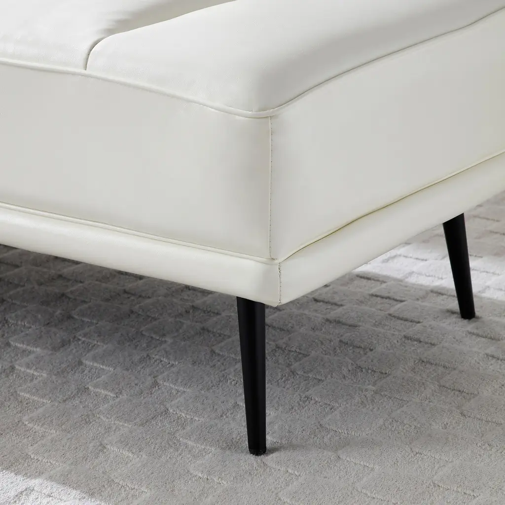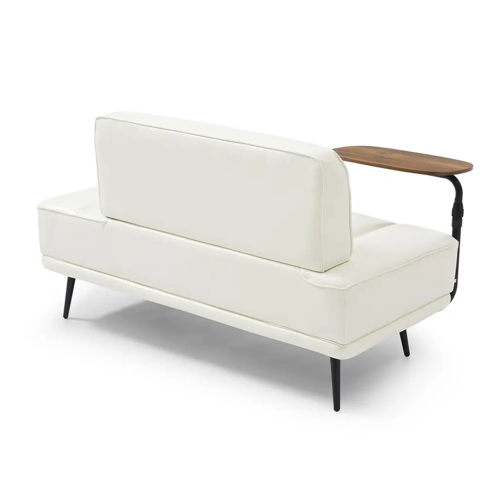 Faux Leather Upholstered 2 Seater Sofa Ottoman With Side Table,360-Degree Swivel - Beige