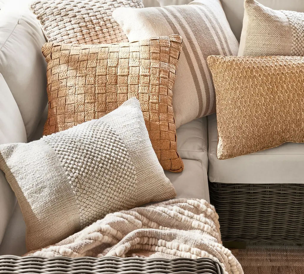 Faux Natural Fiber Honeycomb Outdoor Lumbar Pillow