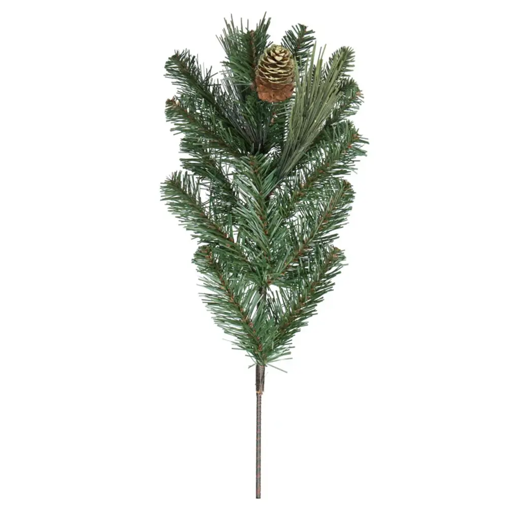 Impress your guests with this natural looking faux pine and cone spray. The spray has spruce pine cones mixed among the pine and can be used indoor or outdoor. Add to any window box, planter, tree or indoor arrangement for a great seasonal look.