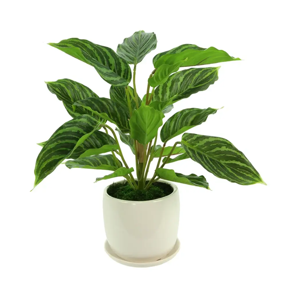 This artificial pothos plant is presented in a bright-white ceramic planter to complement its trailing vine branches and green heart-shaped leaves. Lush and leafy, this houseplant looks wonderful in a plant hanger or on a shelf so its realistic vines can spill over the edges in a verdant display.
