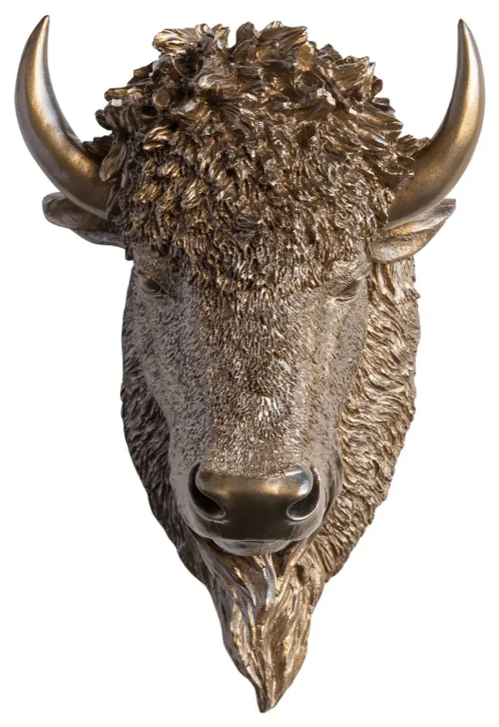 Faux Taxidermy Bison Head Wall Mount, Bronze