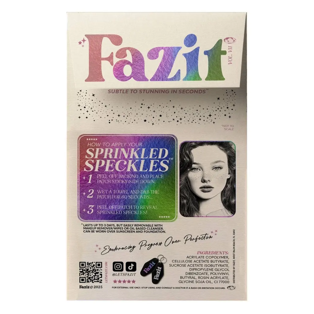 Create bold makeup looks and achieve a seamless “Faux Glitter Freckle” glow in seconds with Fazit Beauty's Sprinkled Rainbow Stardust Speckle Makeup Patches. This 6-piece set is waterproof, long-lasting, and effortlessly easy to apply—just press, pat, and peel to reveal instant glam in seconds! These can be worn over makeup or on bare, clean skin for mess-free sparkle that stays flawless all day and night.