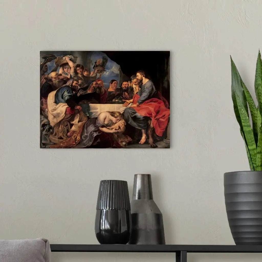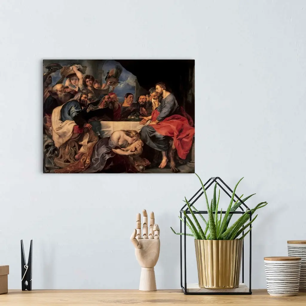BAL394441 Feast in the house of Simon the Pharisee, c.1620 (oil on canvas) by Rubens, Peter Paul (1577-1640); State Hermitage Museum, St Petersburg, Russia; (add. info.: Mary Magdalene washing the feet of Christ); Flemish, out of copyright