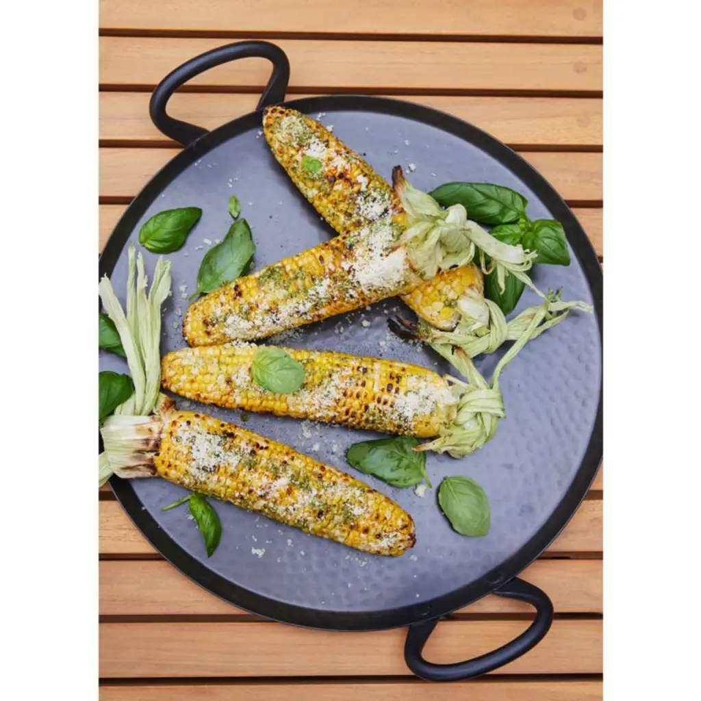 Our Feast round hammered iron serving platter is a great way to serve appetizers, finger foods or ethnic specialties to a big group with high-impact style. Each large-scale server is handcrafted from iron, hand-hammered into its own unique pattern. Practical sturdy loop handles complete the traditional look.Looking for gift ideas? Browse more gifts under $50.