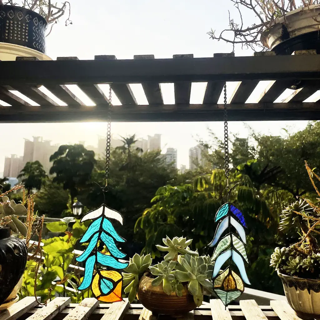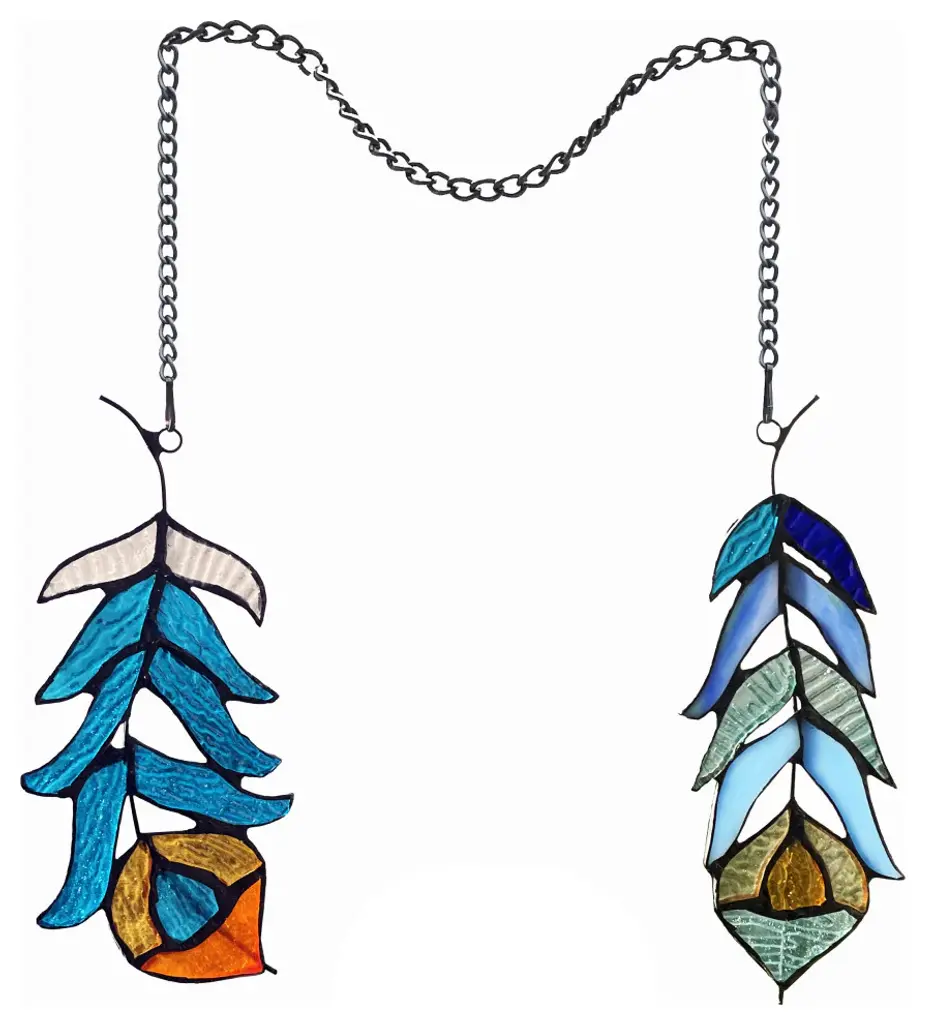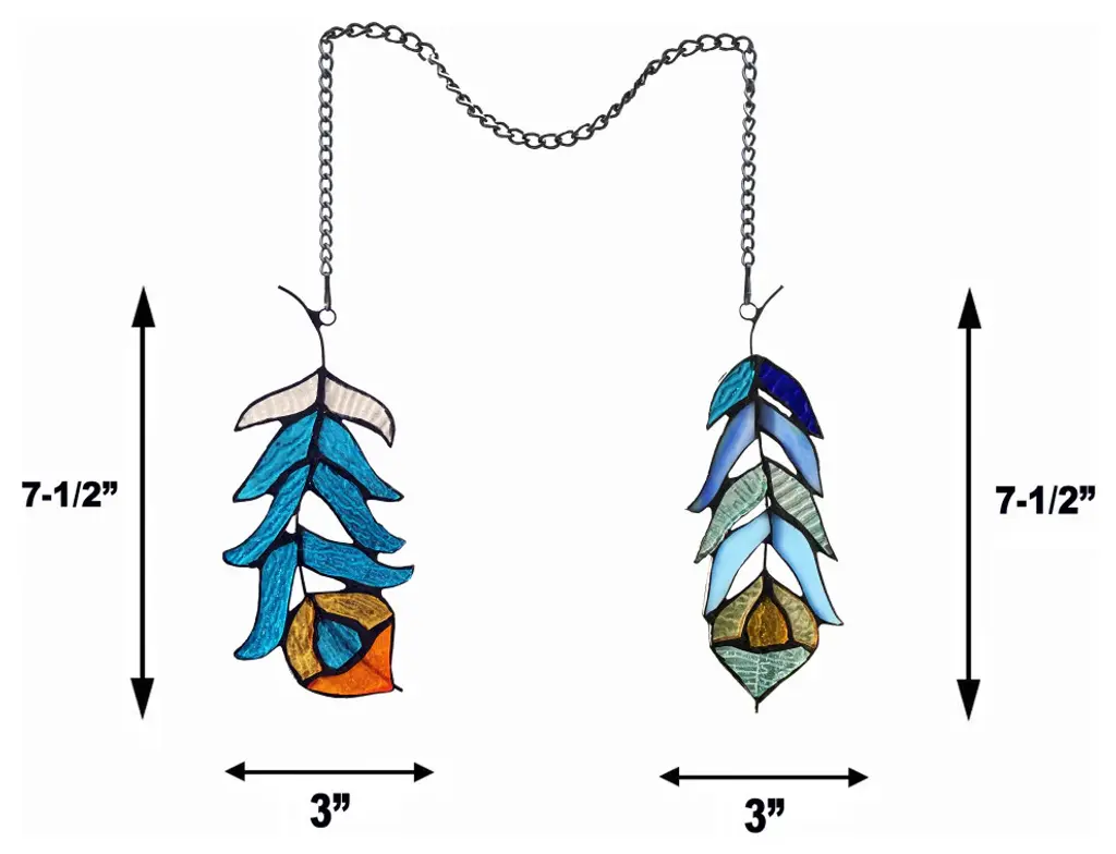 Feather Tiffany-Style Stained Glass Window Panels 7" Tall