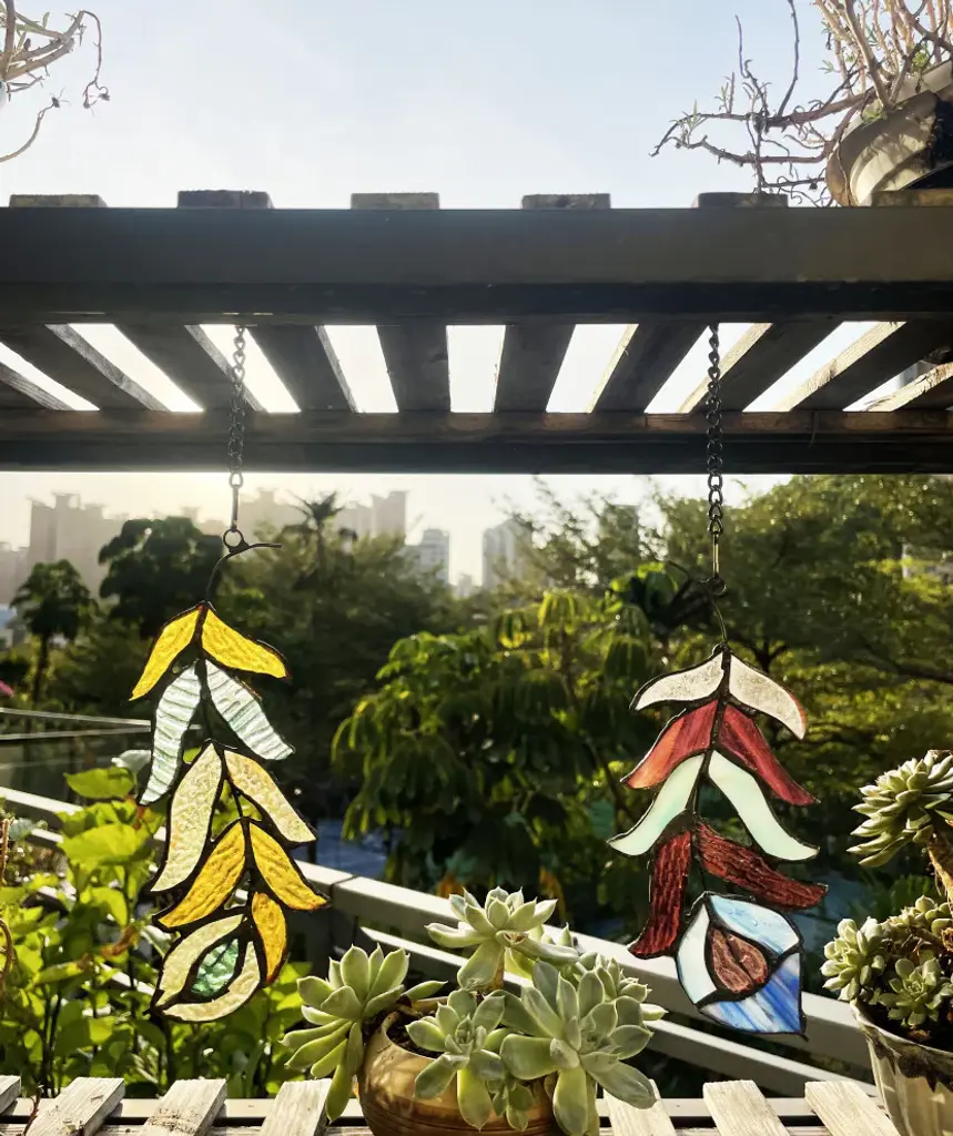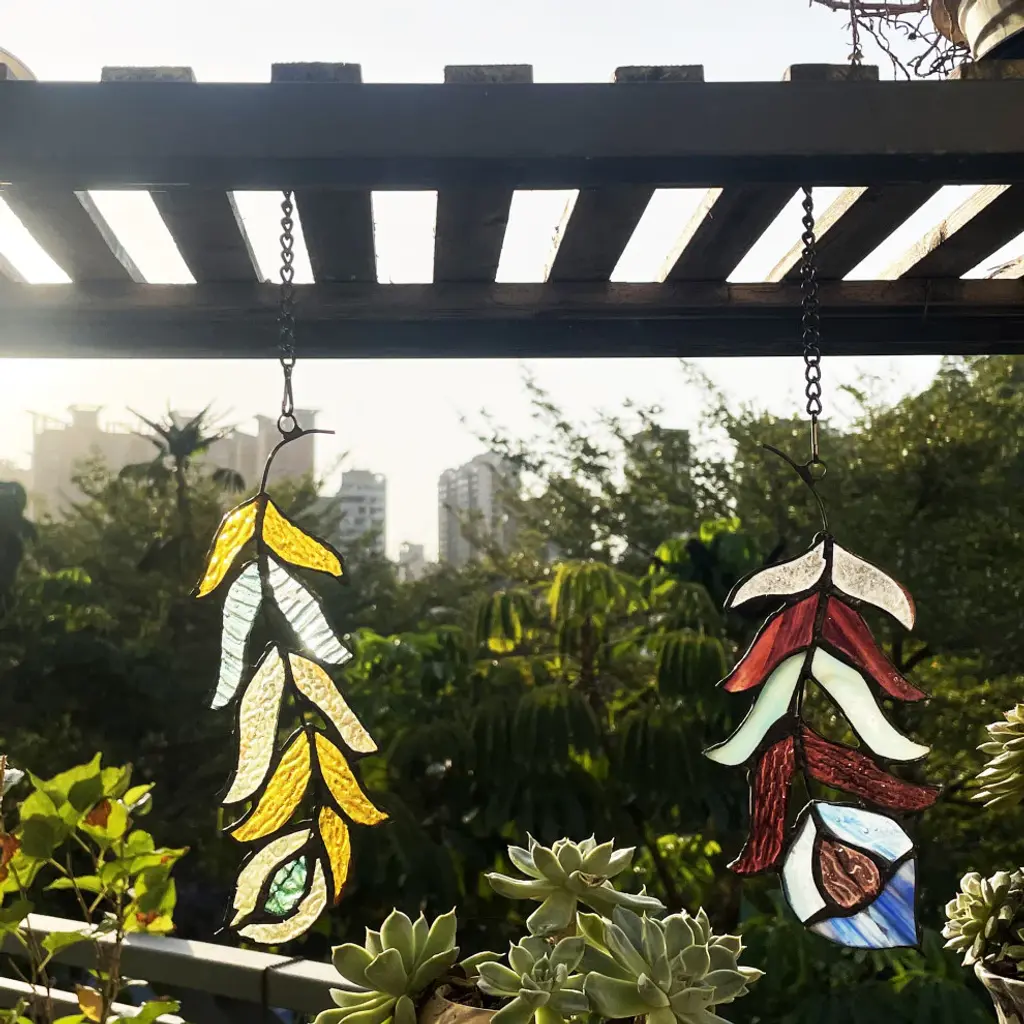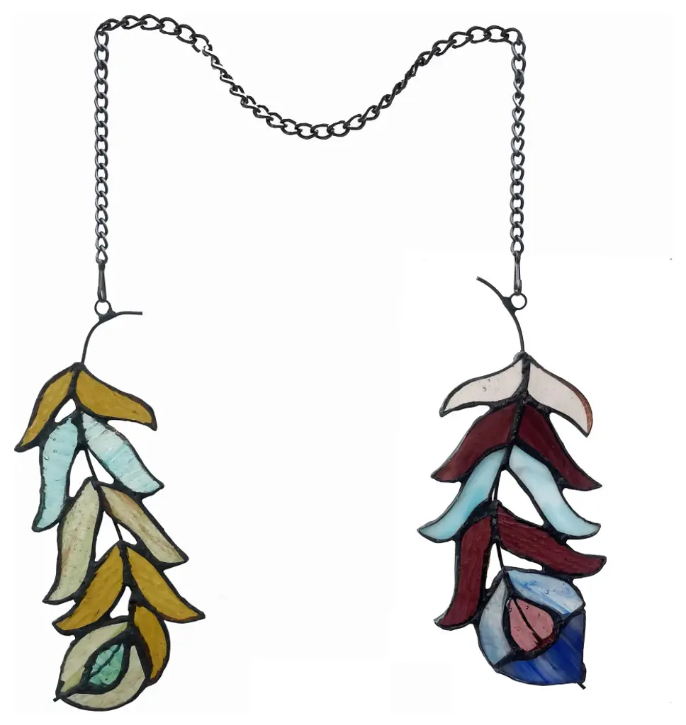 Feather Tiffany-Style Stained Glass Window Panels 7" Tall
