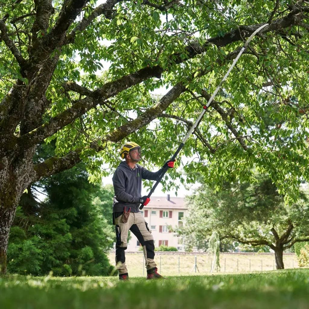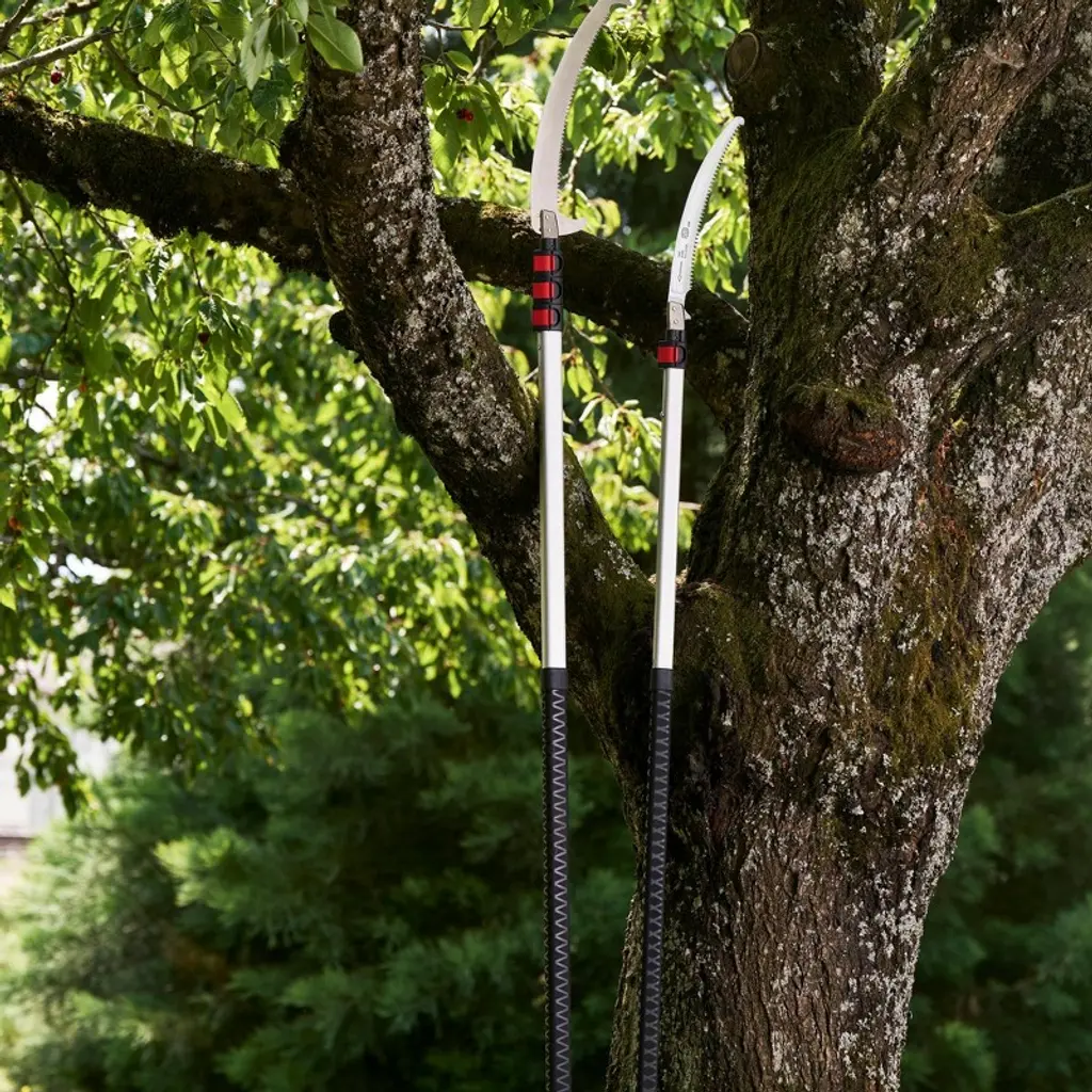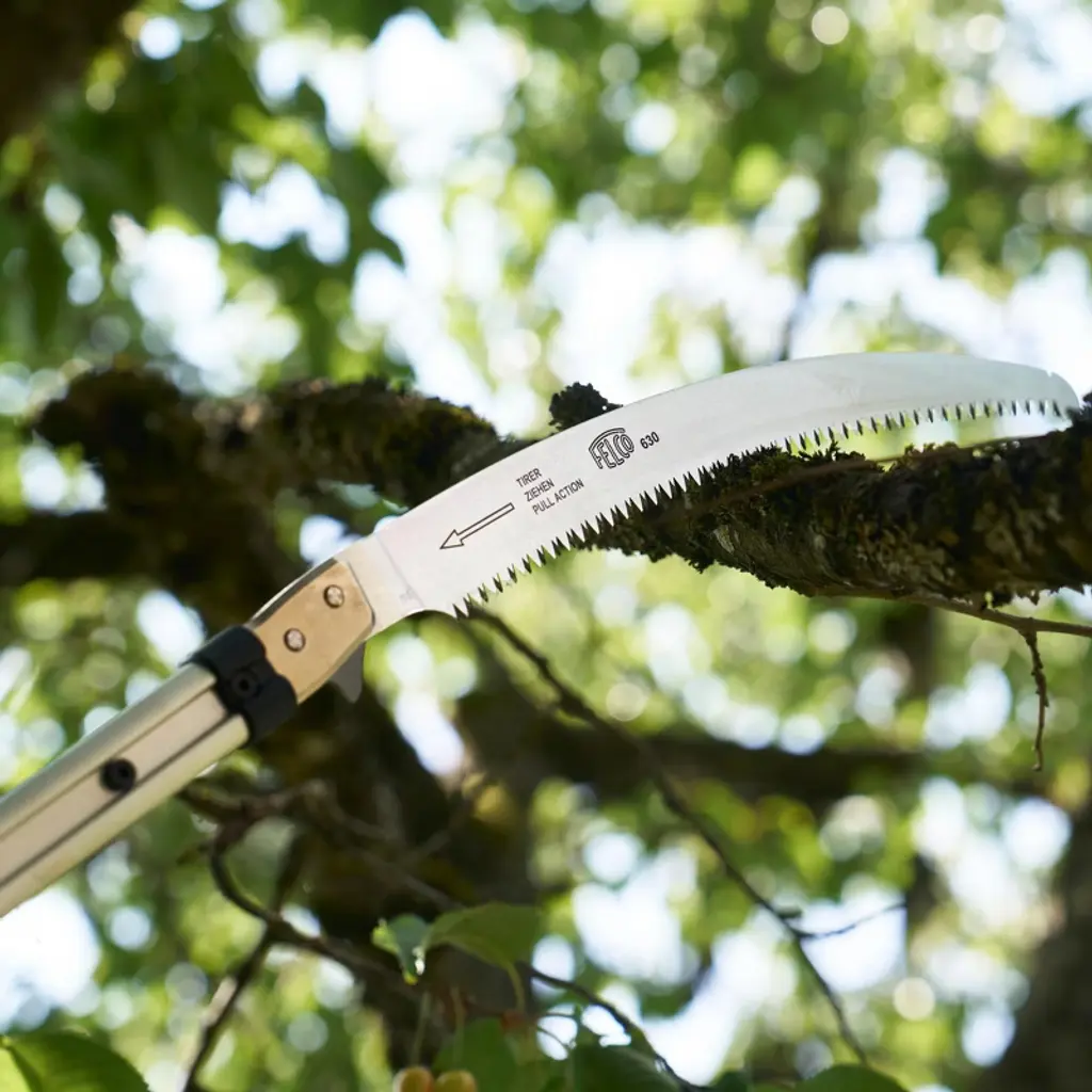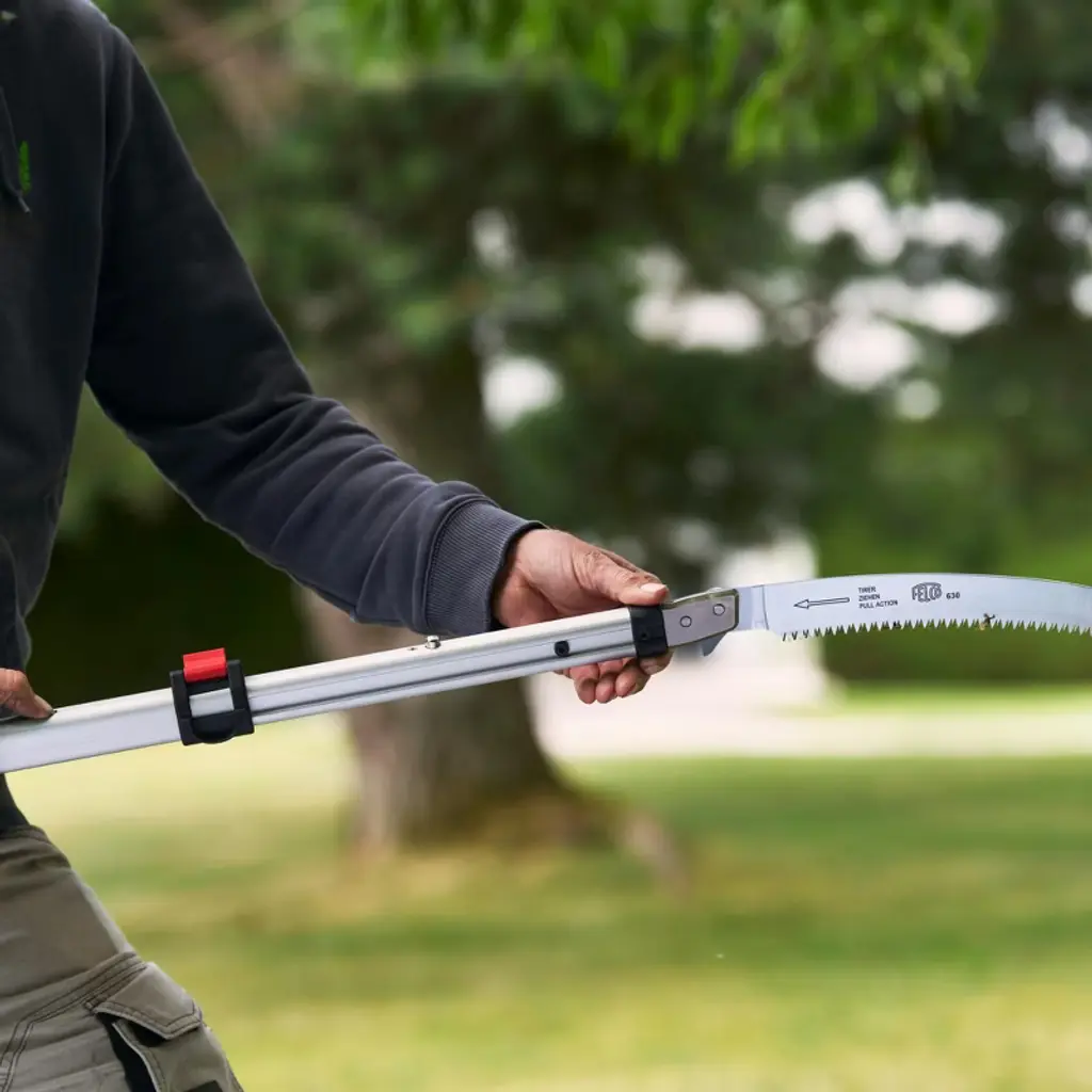 Using the same blade as the FELCO 630, the FELCO 682 pole saw is the ideal tool for landscapers, arborists and hobby gardeners. It features a lightweight aluminium pole with one extension, a 330 mm curved blade with FELCO's unique tooth geometry with impulse-hardening (no sharpening required). The FELCO 682 can reach a total length of 3.4 m when fully extended.