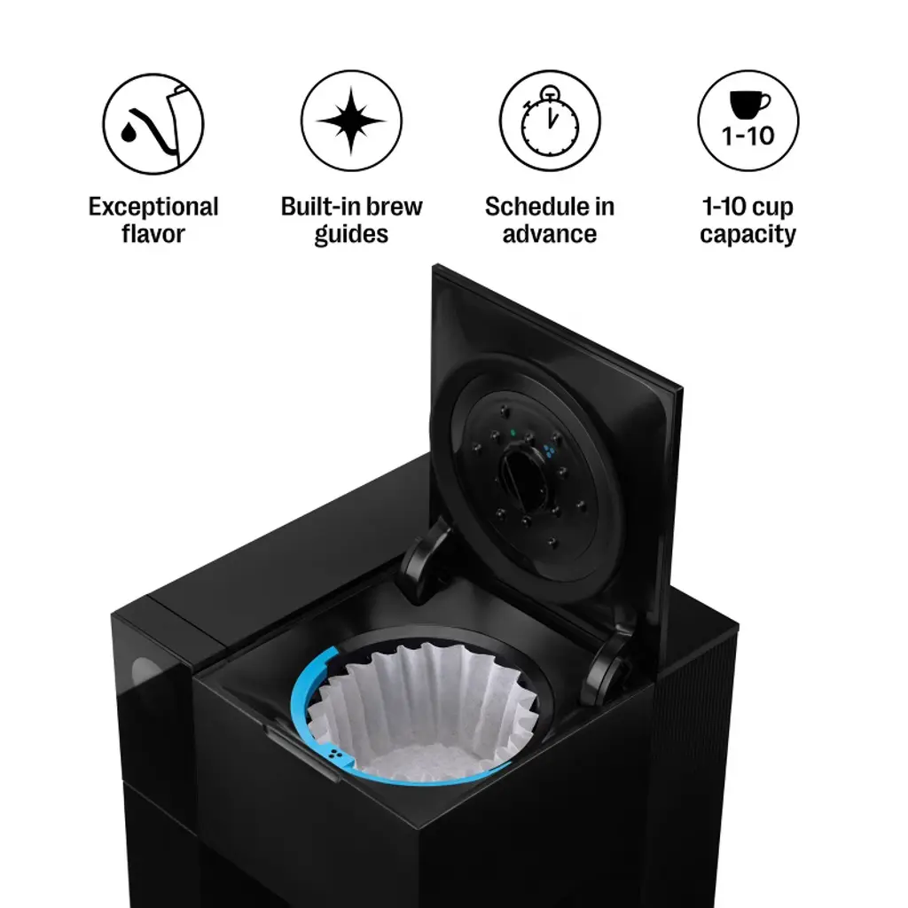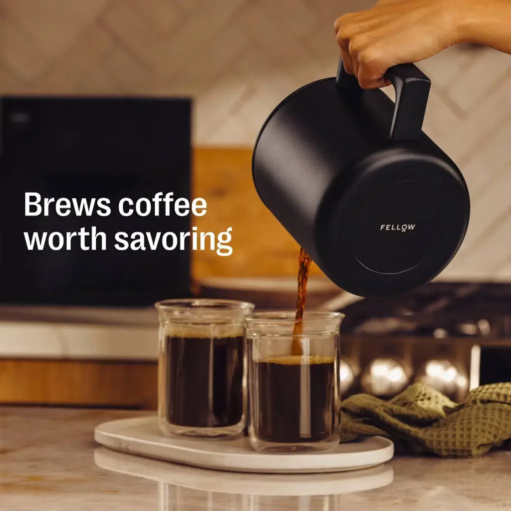 Enjoy barista-quality coffee, every time with Aiden Precision Coffee Maker. It combines the art of hand-brewing with the convenience of automation, so every cup is smooth, rich, and perfectly balanced. Precise temperature control heats water to the ideal range, while a dual shower head evenly saturates grounds for pour-over results. Aiden features two brew baskets, so whether you’re brewing 1 cup or 10, you can enjoy deliciously consistent results, and the flavor-forward thermal carafe keeps your coffee warm while preserving its fresh flavor. Simply select your coffee’s roast level and how many cups you want and the clear LCD display tells you how much coffee to grind, plus you can schedule your brew in advance and create custom coffee recipes. You will taste the difference.Brand Overview: Fellow was founded with a vision of bringing the specialty coffee experience home. We design beautiful precision kitchenware, unrivaled in quality and built to last.