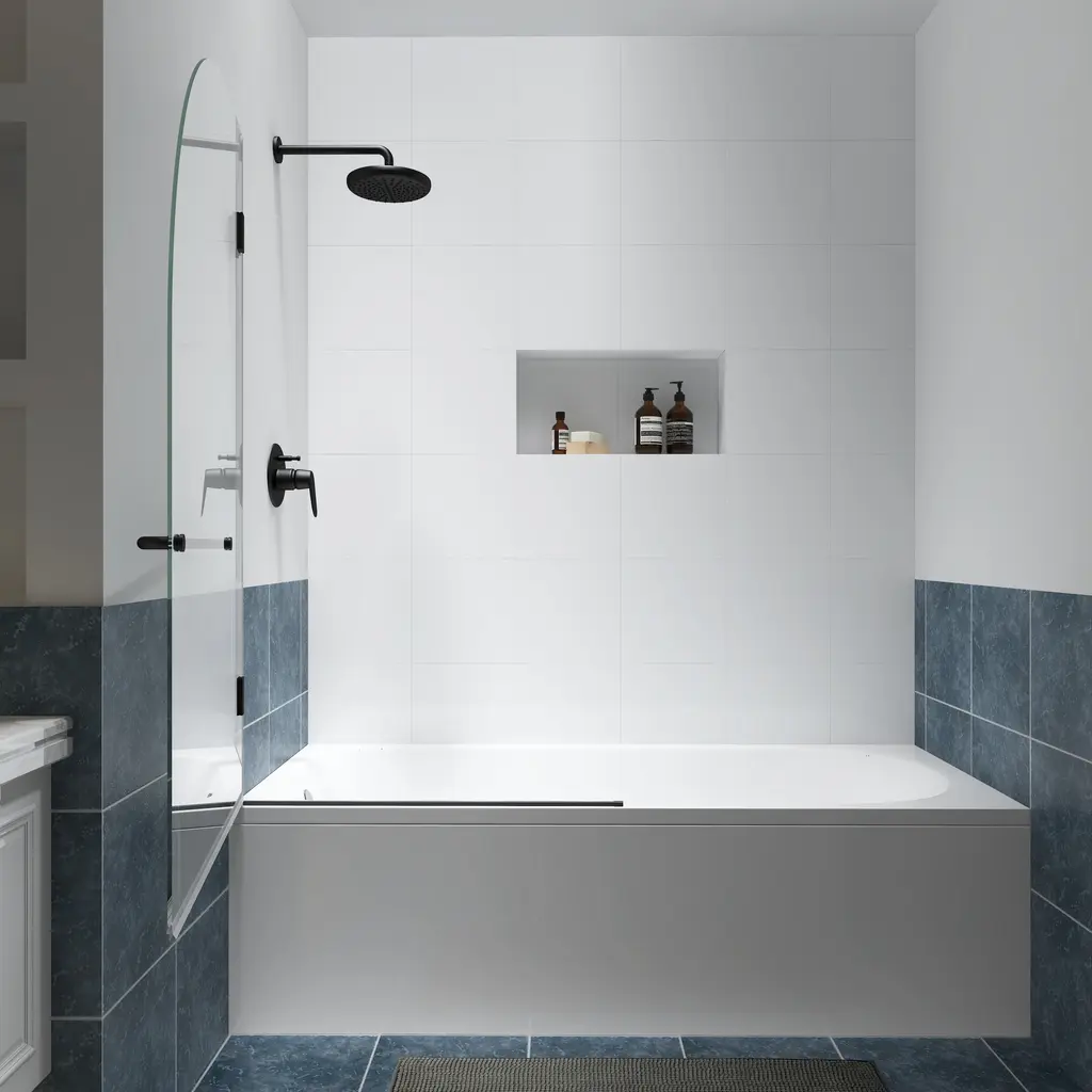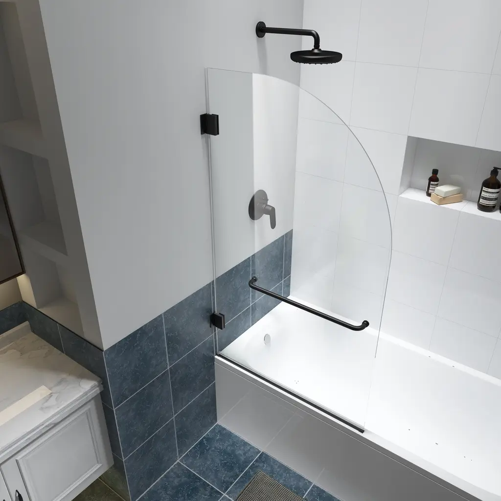 Felyl 34" W X 58" H Hinged Frameless Tub Door With Heat Soaking Process And Protective Coating Clear Glass - Black