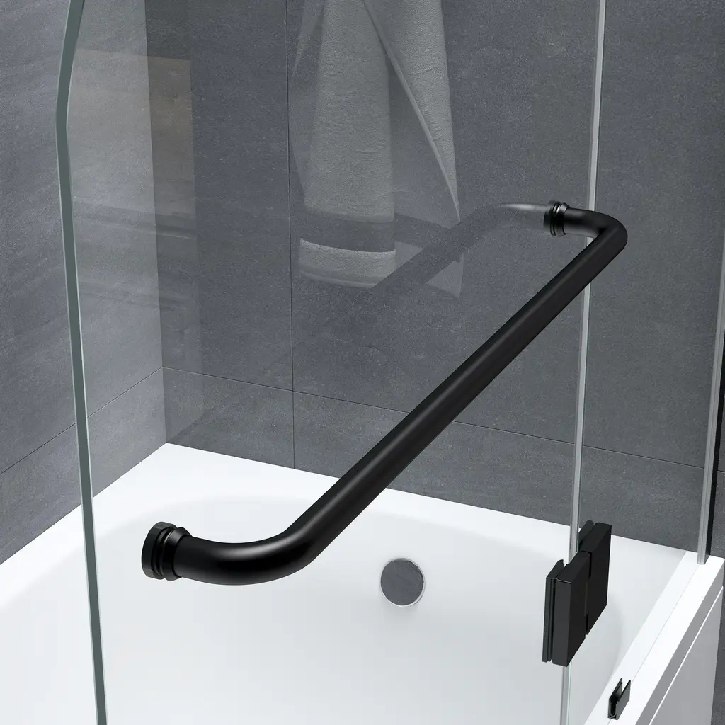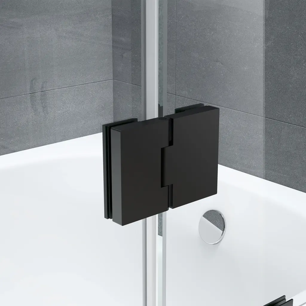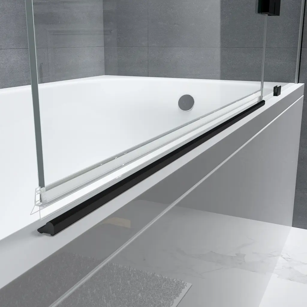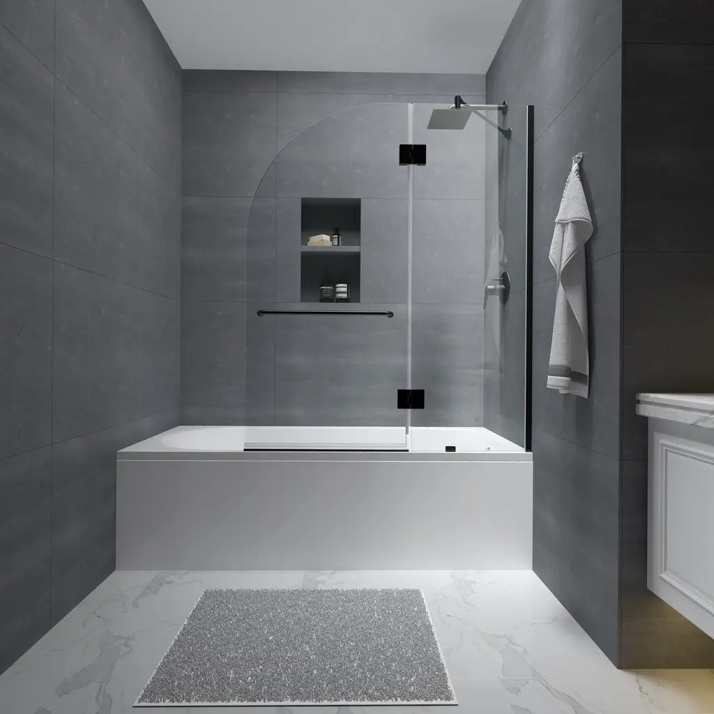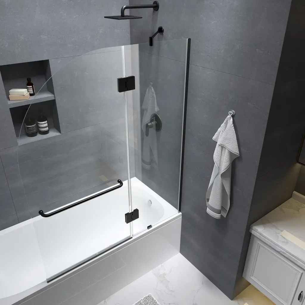 Felyl 48-Inch Hinged Frameless Tub Door With Heat Soaking Process And Protective Coating Clear Glass - Black
