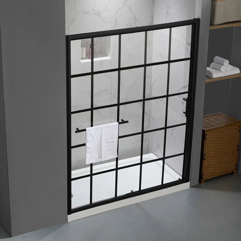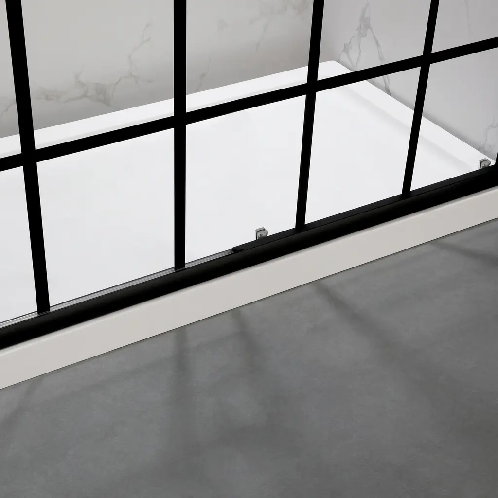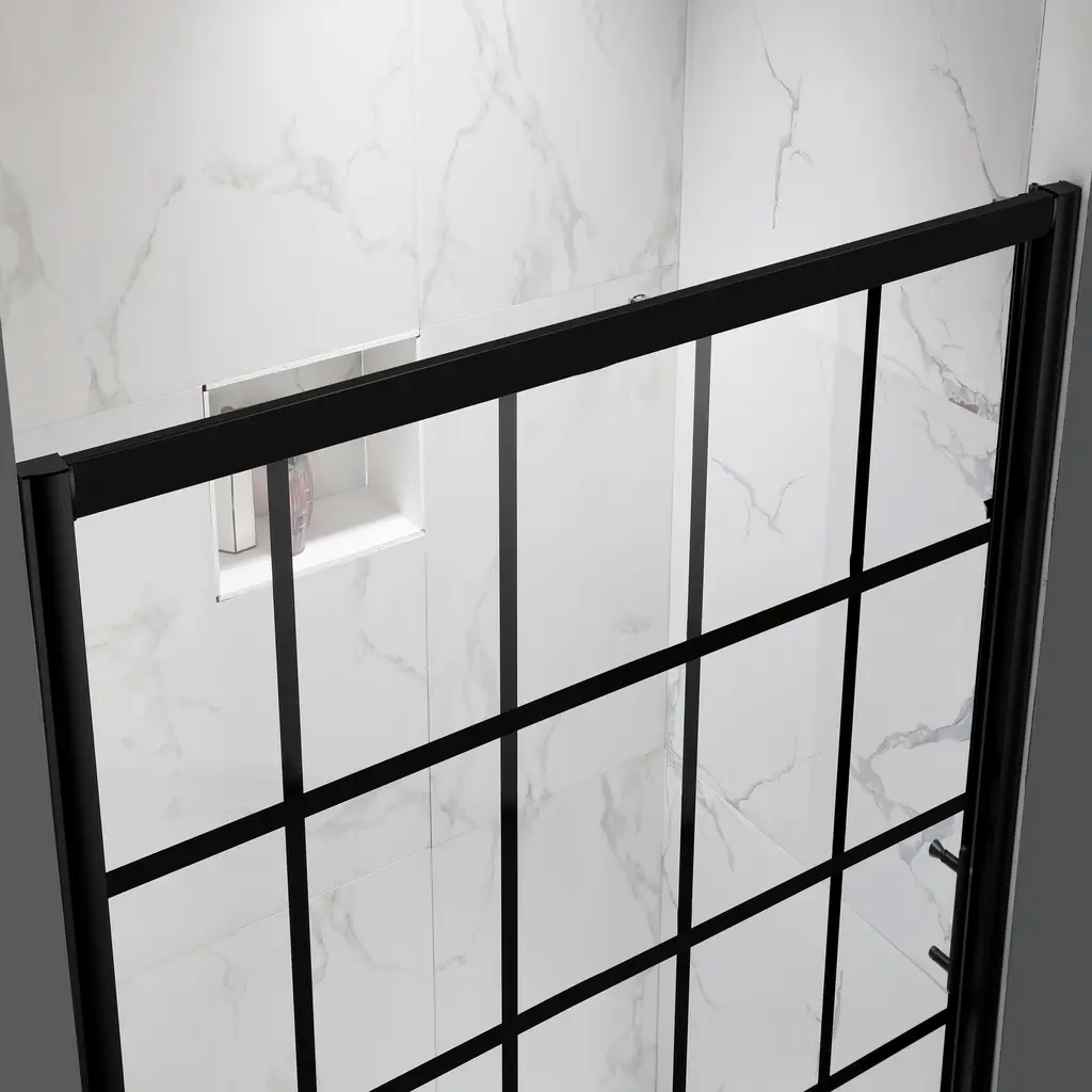 Renovate your bathroom with the shower door in matte black finish, providing a modern look gives your bathroom an extraordinary transformation. Coating treatment protects glass surface from buildup of hard water and stains, eases you to clean and remain clarity for longer. Roller bearings resting on sturdy metal frame, provides stable support and make the shower door easy to slide. Impressed you with a contemporary look, and in low maintenance, the shower door perfectly fit your shower area. Features Product Details Dimensions