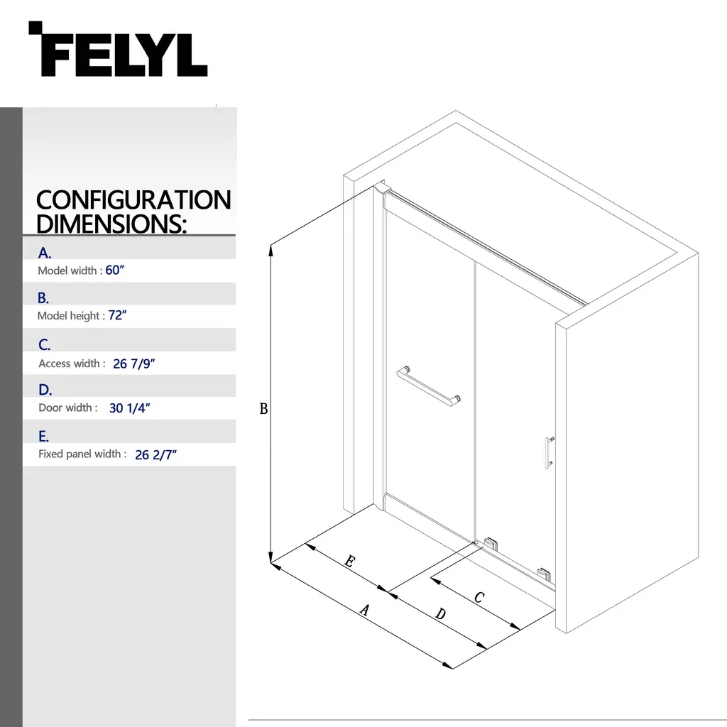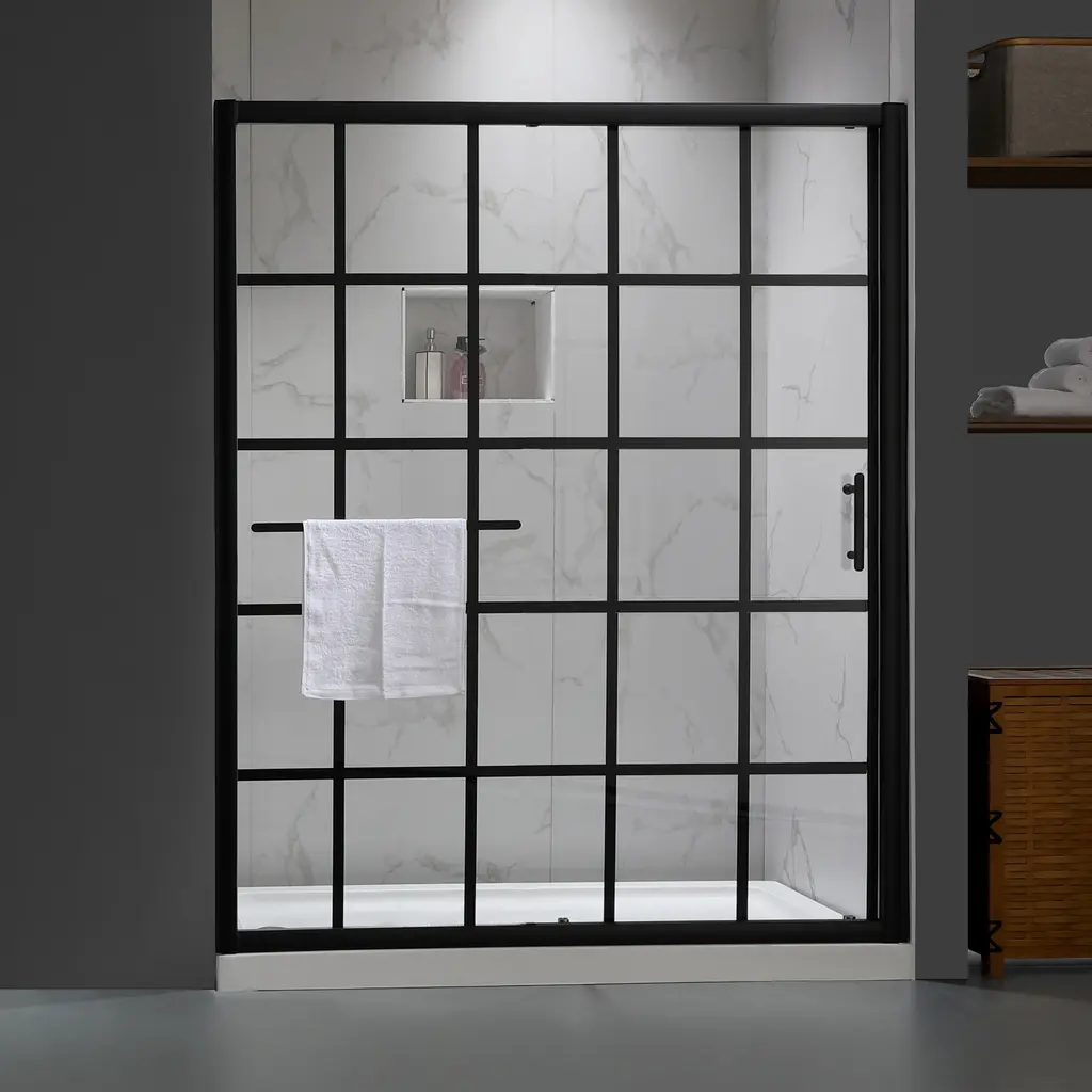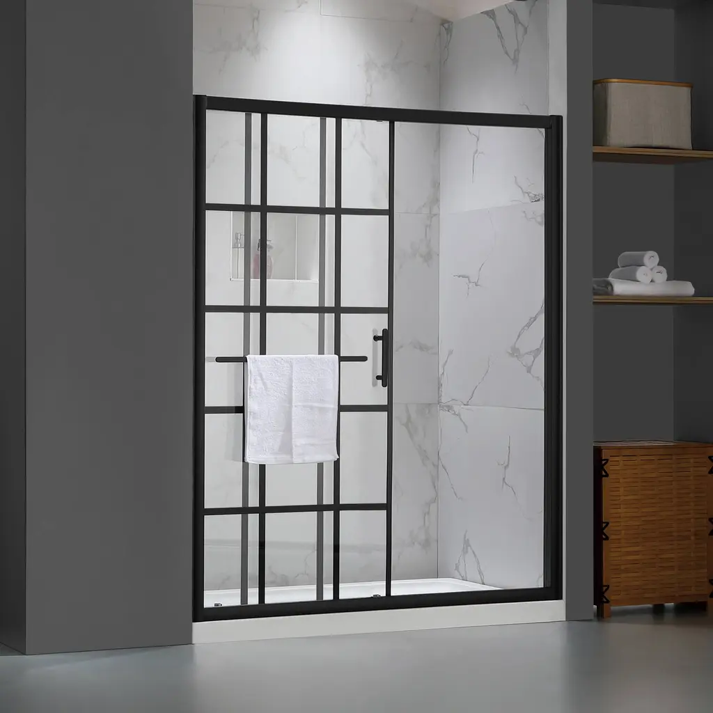 Renovate your bathroom with the shower door in matte black finish, providing a modern look gives your bathroom an extraordinary transformation. Coating treatment protects glass surface from buildup of hard water and stains, eases you to clean and remain clarity for longer. Roller bearings resting on sturdy metal frame, provides stable support and make the shower door easy to slide. Impressed you with a contemporary look, and in low maintenance, the shower door perfectly fit your shower area. Features Product Details Dimensions