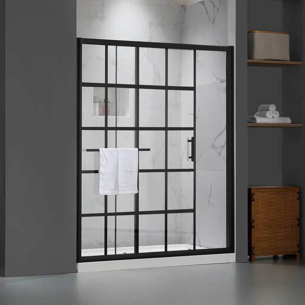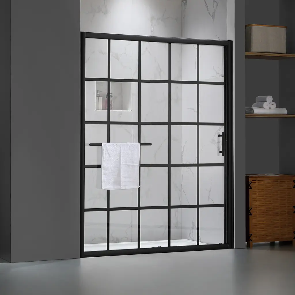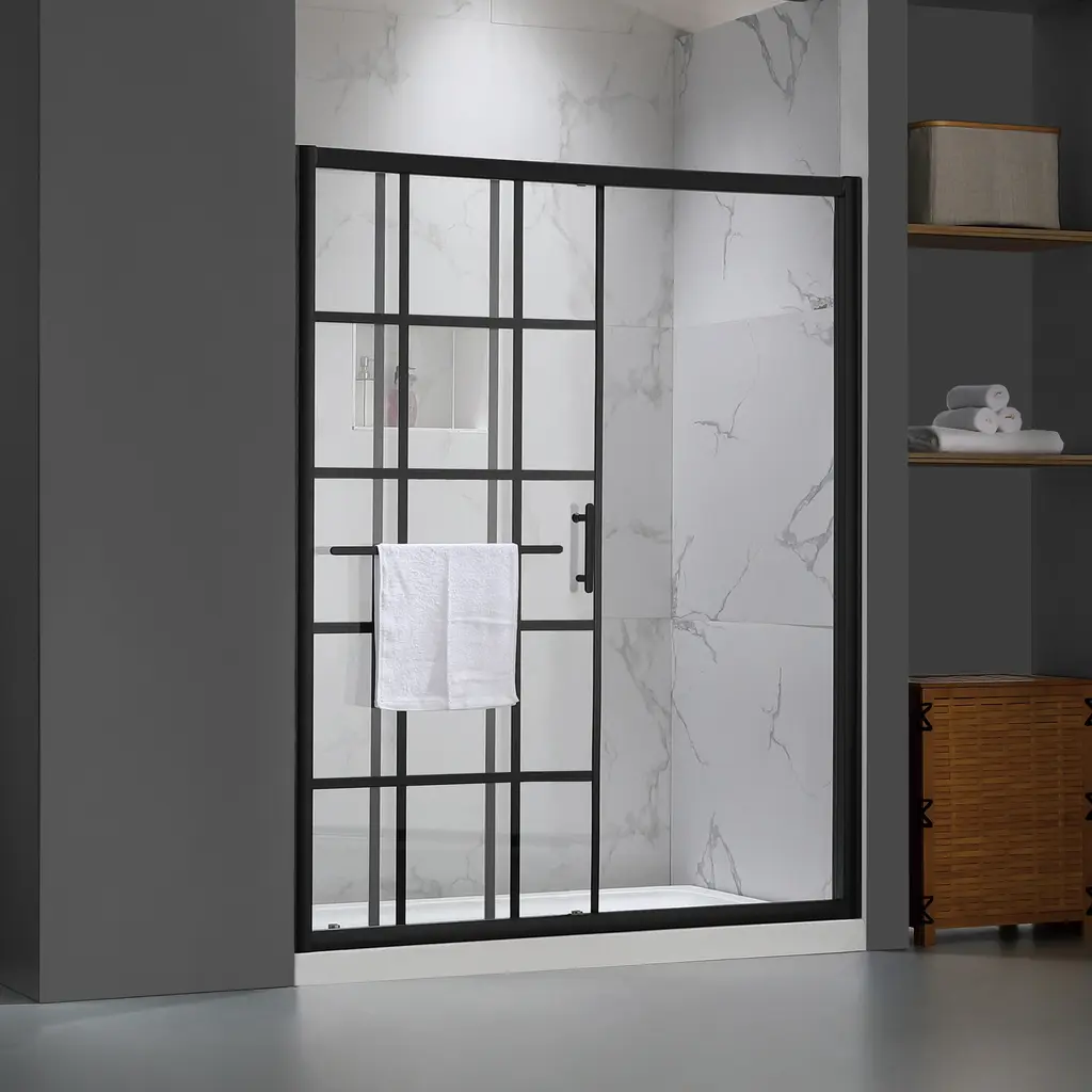 Renovate your bathroom with the shower door in matte black finish, providing a modern look gives your bathroom an extraordinary transformation. Coating treatment protects glass surface from buildup of hard water and stains, eases you to clean and remain clarity for longer. Roller bearings resting on sturdy metal frame, provides stable support and make the shower door easy to slide. Impressed you with a contemporary look, and in low maintenance, the shower door perfectly fit your shower area. Features Product Details Dimensions