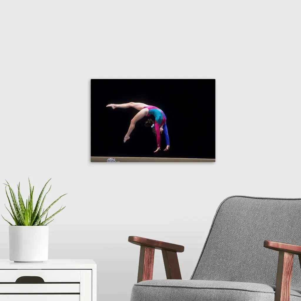 Female gymnast on the balance beam wall art for home and office decor. Discover canvas art prints, photos, mural, big canvas art and framed wall art in GreatBigCanvas.com's varied collections.