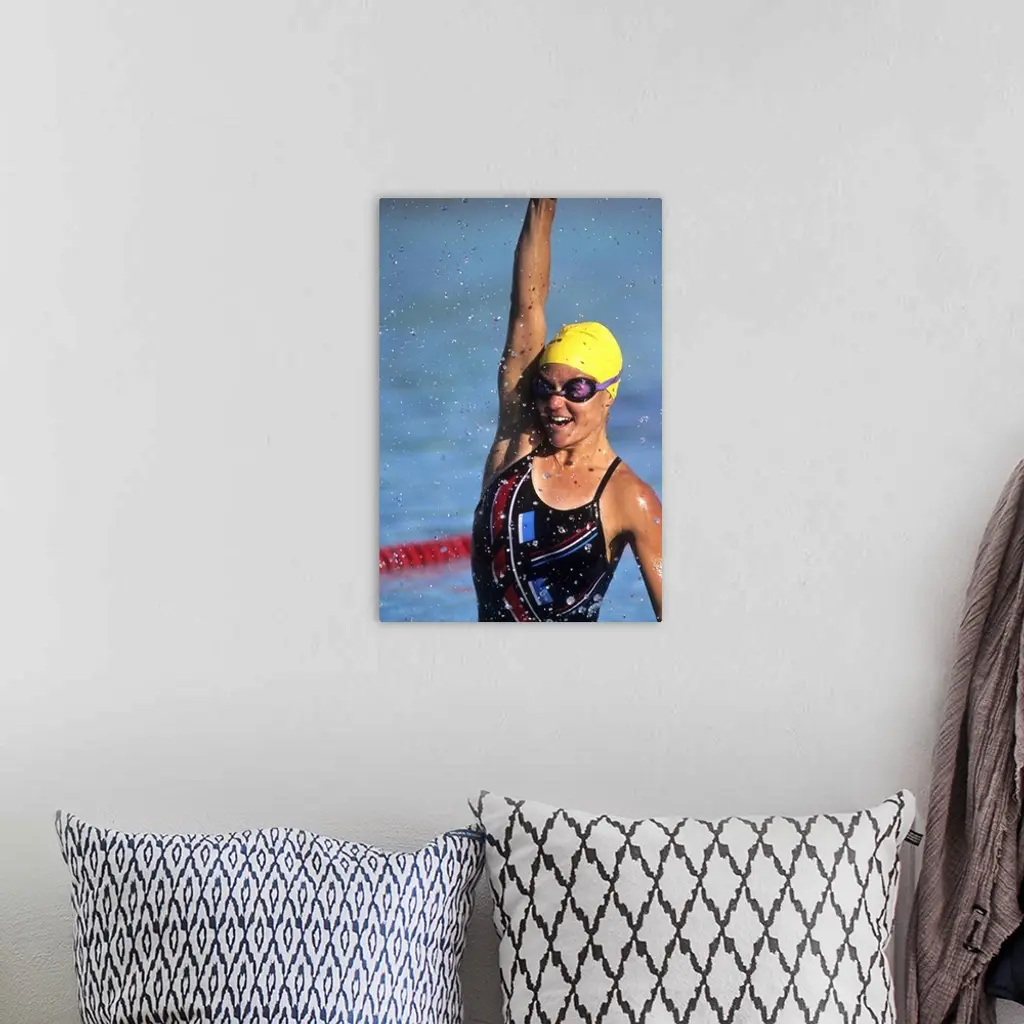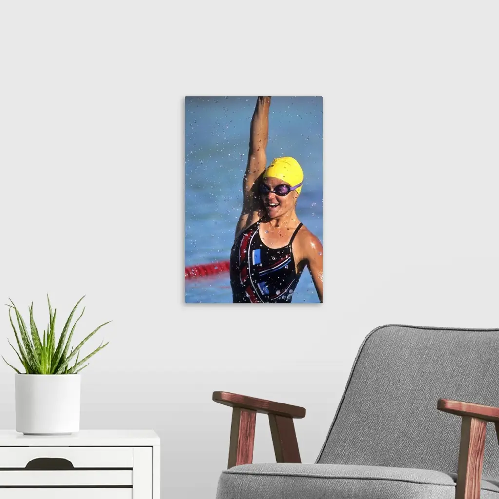 Female swimmer reacts to victory wall art for home and office decor. Discover canvas art prints, photos, mural, big canvas art and framed wall art in GreatBigCanvas.com's varied collections.