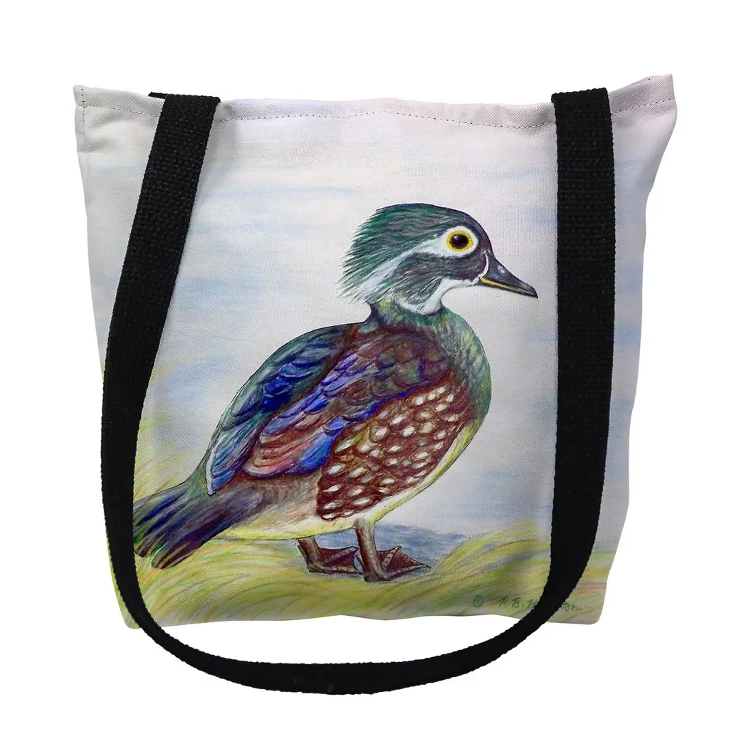 Female Wood Duck Beige Script Small Tote Bag 13x13 - 16 Inches X 16 Inches
