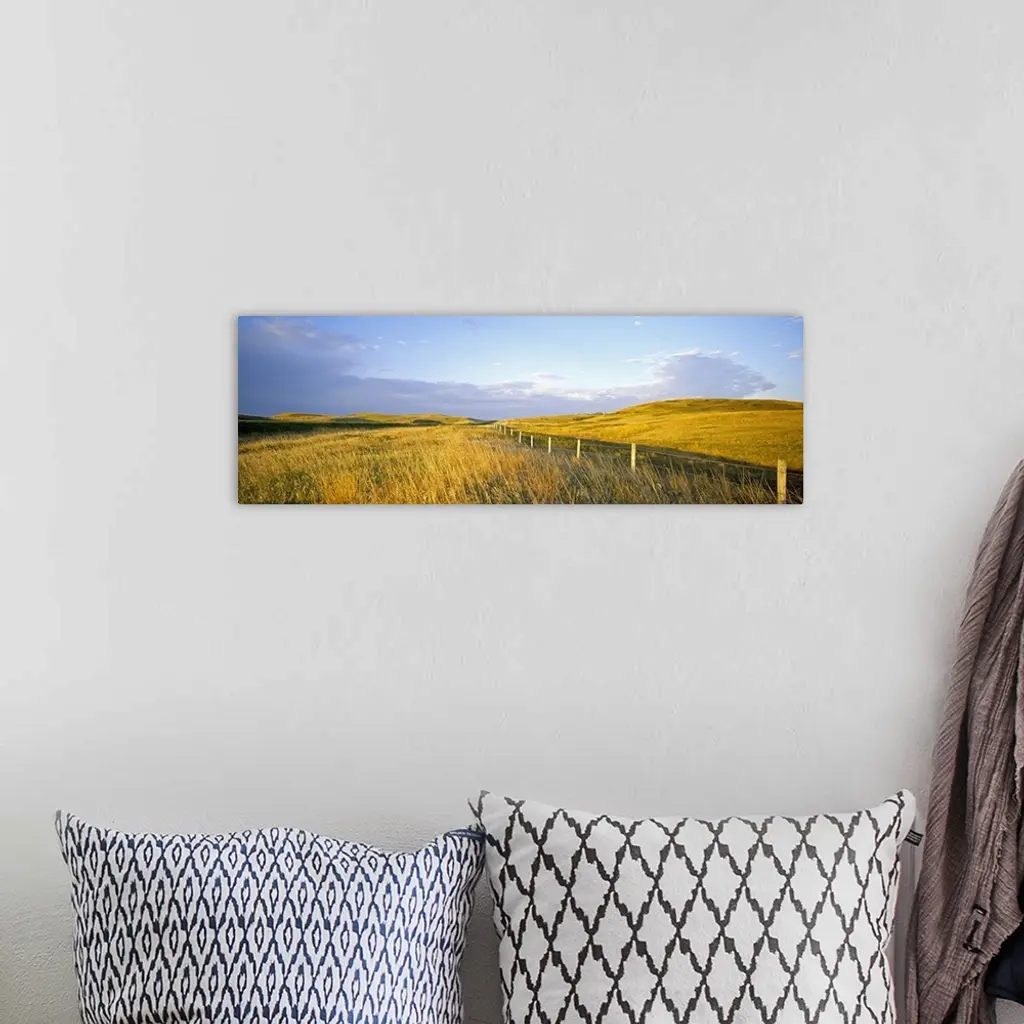 Fence in a field, Standing Rock Indian Reservation, North Dakota wall art for home and office decor. Discover canvas art prints, photos, mural, big canvas art and framed wall art in GreatBigCanvas.com's varied collections.