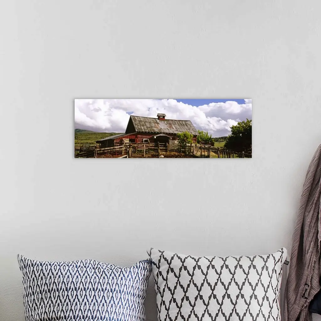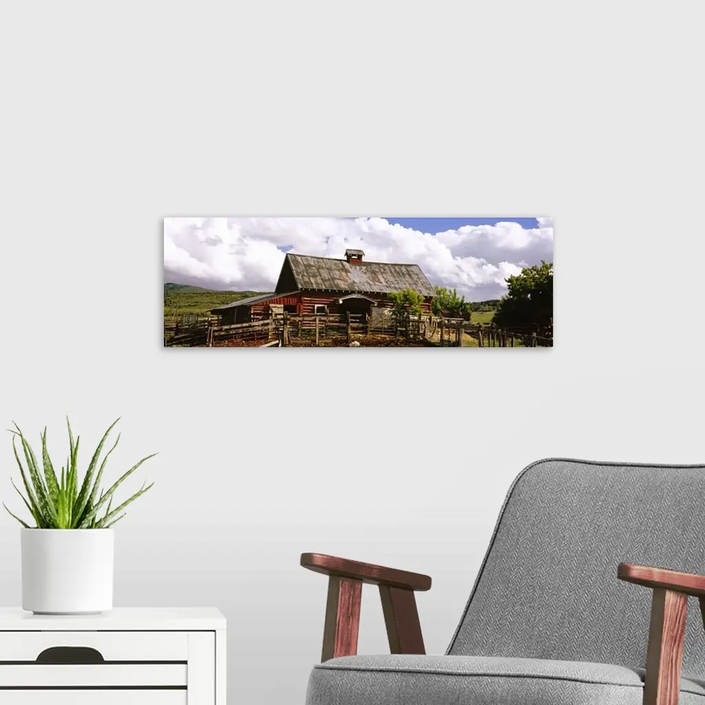 Fence in front of a barn, historical barn, Collbran, Colorado wall art for home and office decor. Discover canvas art prints, photos, mural, big canvas art and framed wall art in GreatBigCanvas.com's varied collections.