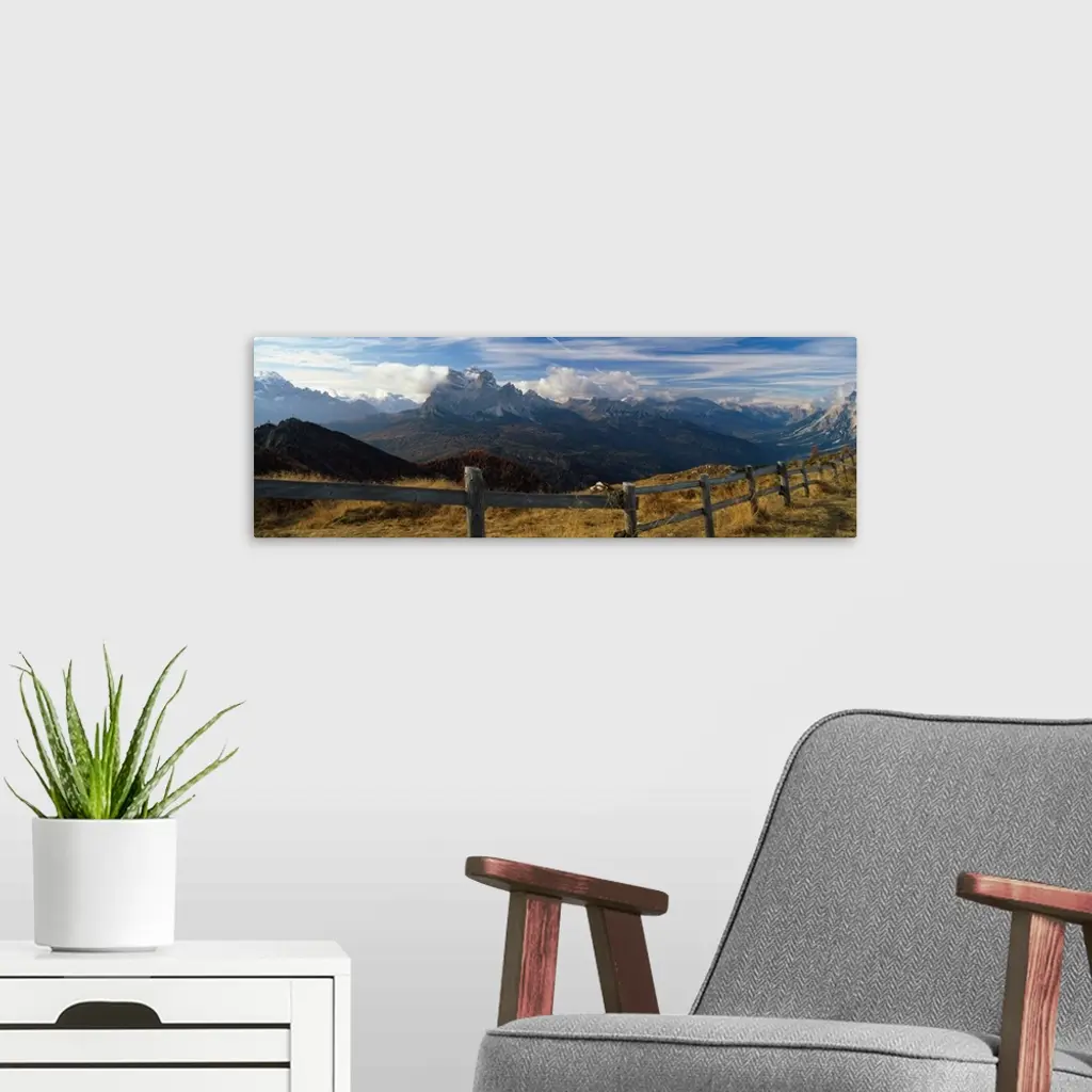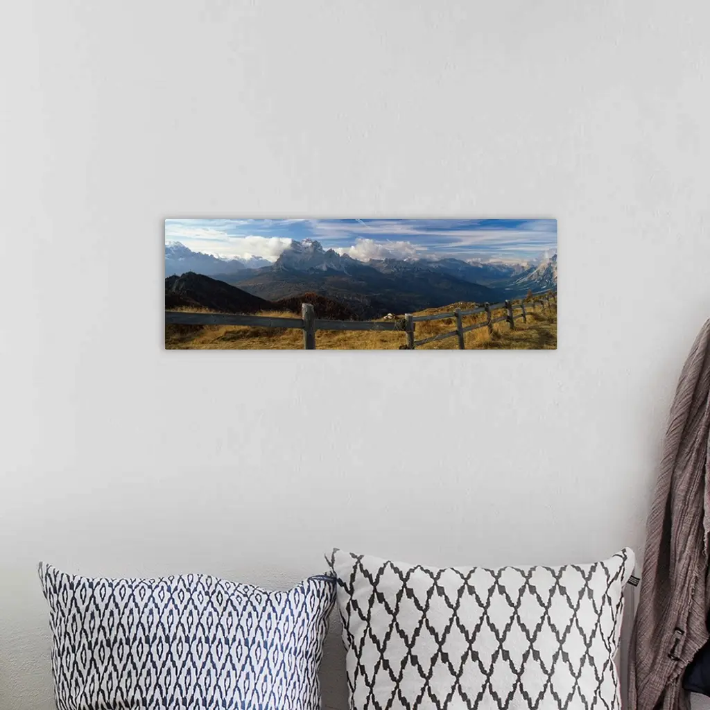 Fence with a mountain range in the background, Mt Rite, Dolomites, Cadore, Province of Belluno, Veneto, Italy wall art for home and office decor. Discover canvas art prints, photos, mural, big canvas art and framed wall art in GreatBigCanvas.com's varied collections.