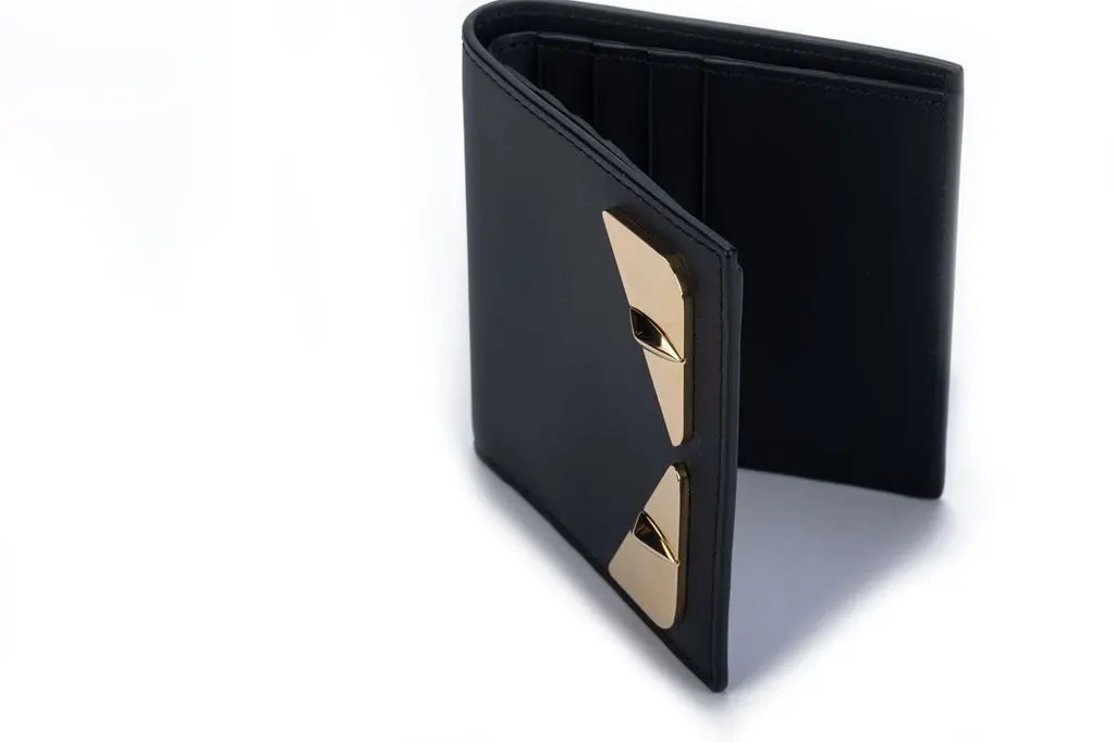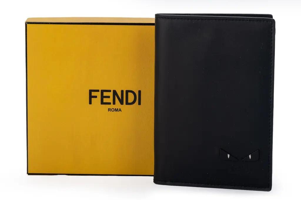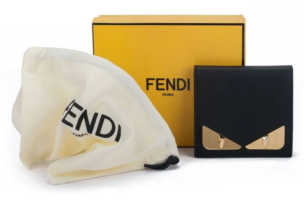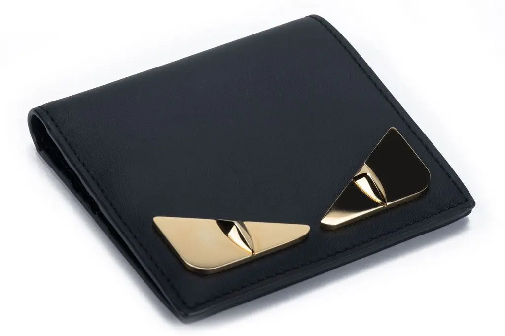 Fendi Monster wallet in black. The briefcase is crafted of leather and on the front are two gold Monster eyes. The interior has several card departments and one bigger department for money. The piece is brand new and comes with a box and dustcover.