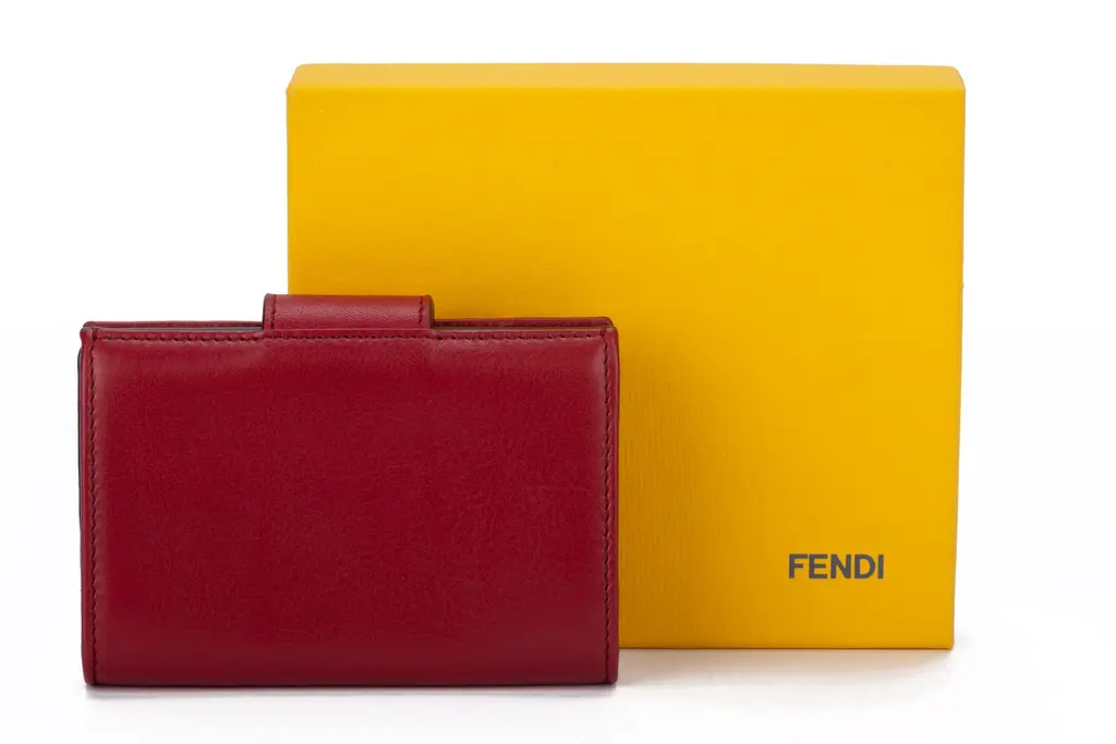 Fendi new burgundy veal wallet with enamel and gold hardware . Box and original dustcover.