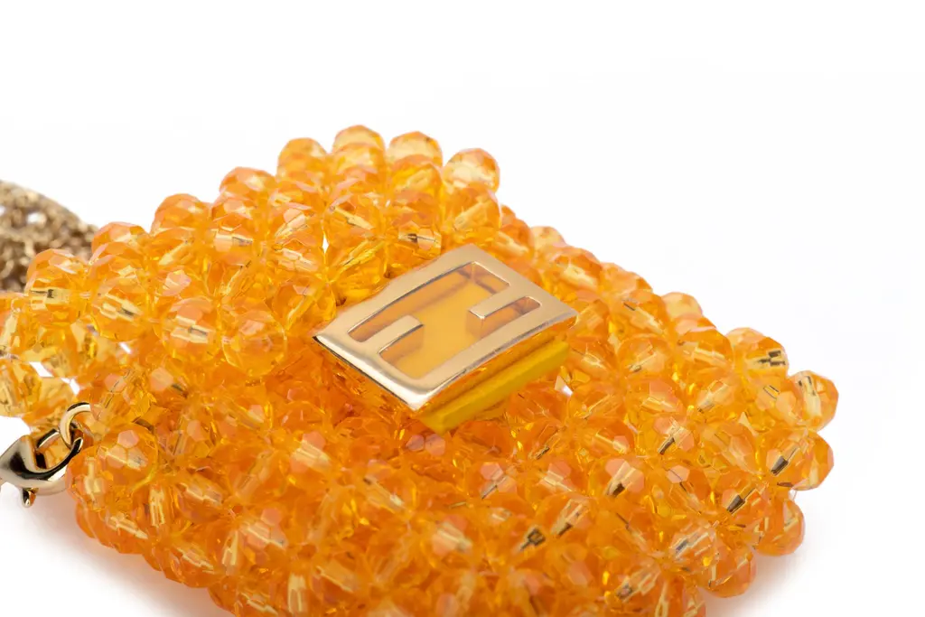 Fendi BNIB pico baguette in pale orange plastic beads with gold hardware. Can be used fro air pods 1 st generation. 23 inch detachable shoulder strap Comes with booklet,box and original .dustcover