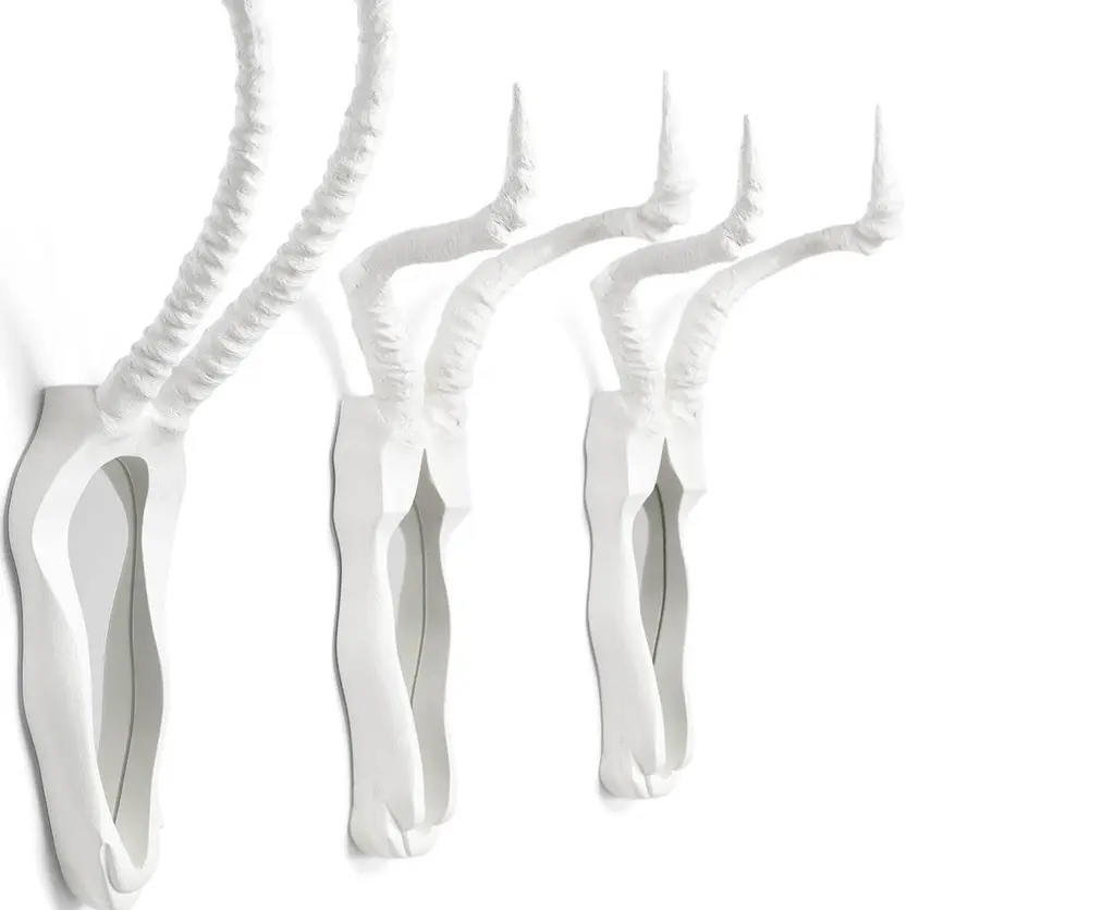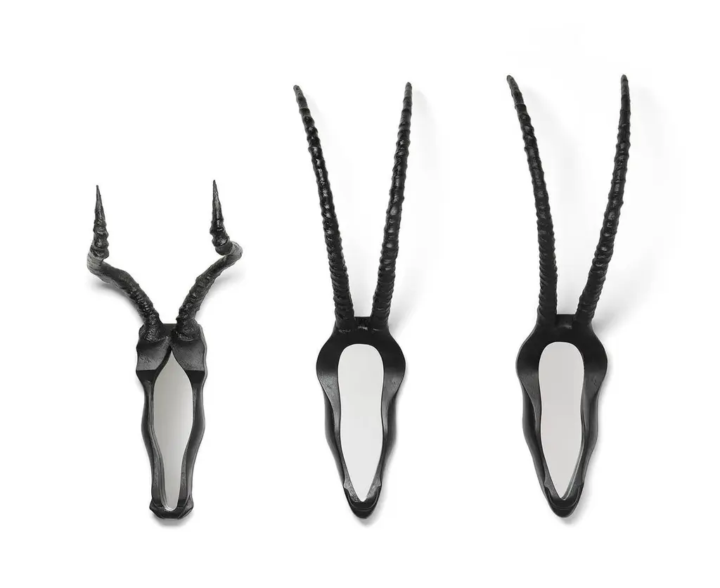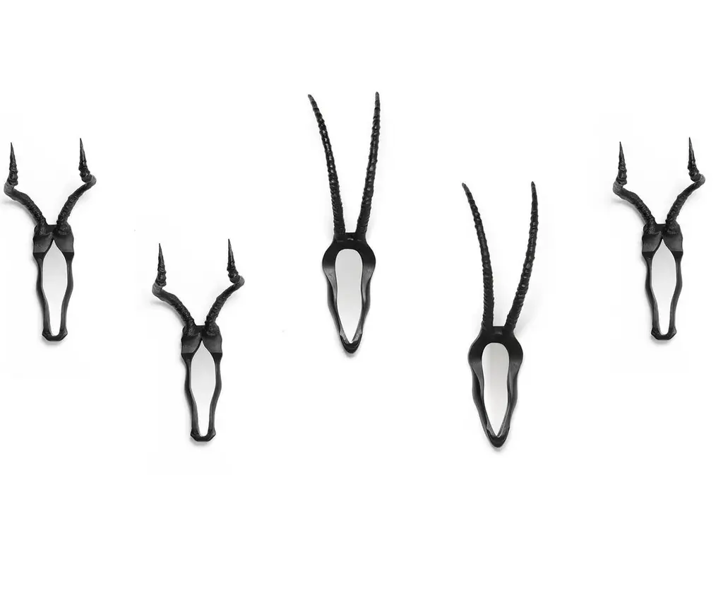 Fendo is a hybrid project signed by Ctrlzak for Mogg. Two mirrors in resin, available in black or white colored finish, which reproduce two extinguished mammals' head. Available also in the table version by adding the pedestal.This particular mirror is something irripetible, thought for those who search a very personal style. The two sculptural objects are made with a faithful design, with the reconstruction of perfect horns. The idea is remember the past saving the image of ancient animals.