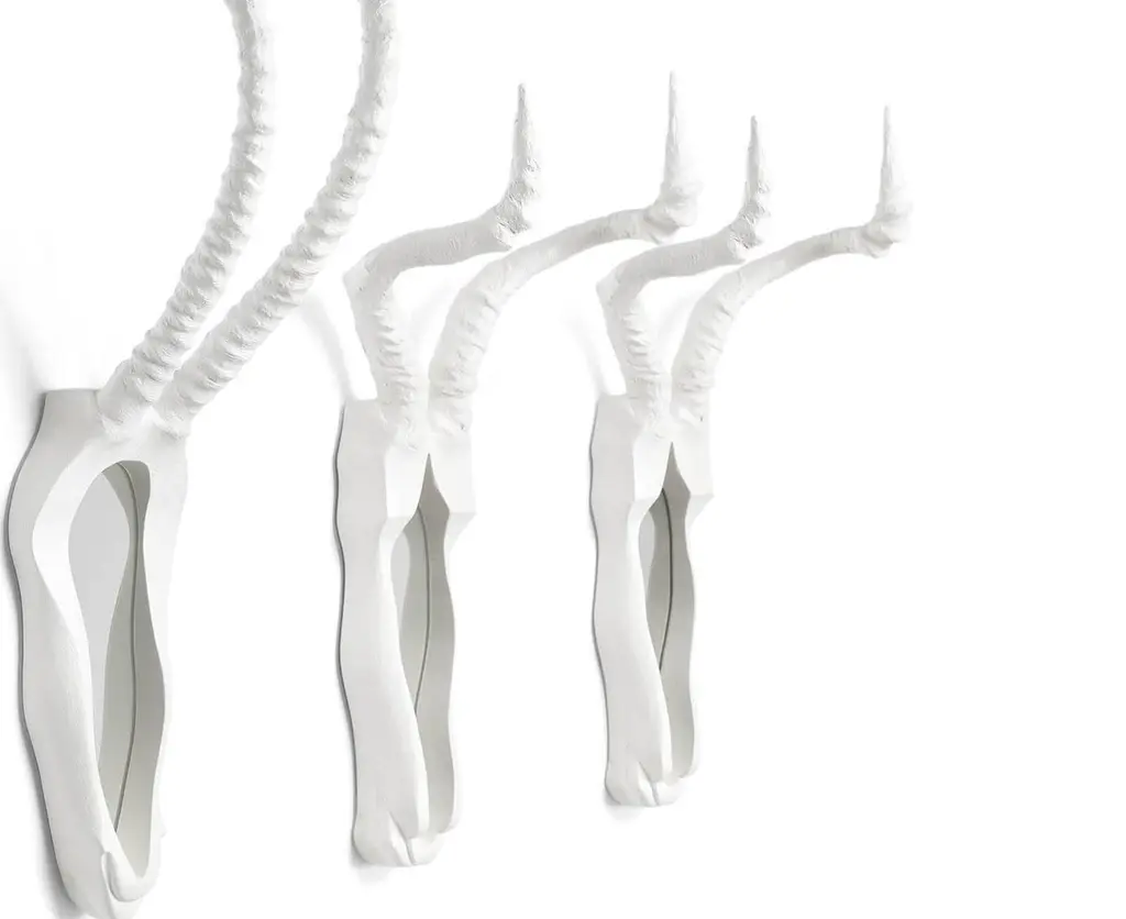 Fendo is a hybrid project signed by Ctrlzak for Mogg. Two mirrors in resin, available in black or white coloured finish, which reproduce two extinguished mammals' head. Available also in the table version by adding the pedestal.This particular mirror is something irripetible, thought for those who search a very personal style. The two sculptural objects are made with a faithful design, with the reconstruction of perfect horns. The idea is remember the past saving the image of ancient animals.