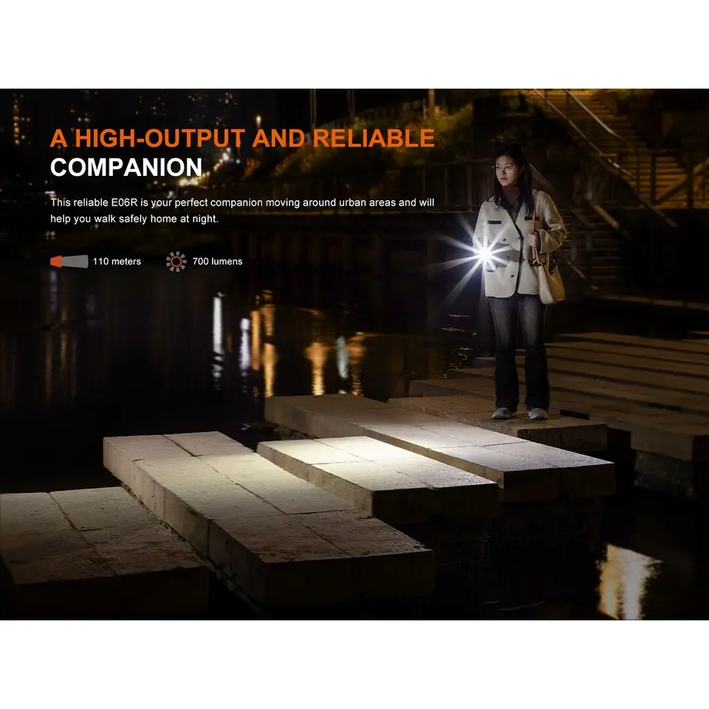 The Fenix E06R is a versatile keychain flashlight capable of delivering up to 700 lumens and casting light up to 120 yards, making it perfect for everyday carry or outdoor activities like camping, hiking, and more. It offers four distinct brightness levels, along with UV light and a red laser pointer (<5mW and the class is 3R). The E06R is easy to operate, with a main switch on its body to control the white light and two separate side buttons to manage the UV and laser outputs. Its UV light is ideal for detecting counterfeit currency, identifying minerals, and inspecting cleanliness, while the red laser is a handy tool for surveying, presentations, and long-distance demonstrations. Additionally, the flashlight features a circular breathing light that can flash in red, blue, a combination of red and blue, or multi-color, making it useful for signaling or creating atmospheric lighting.Charging the E06R is effortless with its built-in USB-C port. Once fully charged, it can provide up to 60 hours of runtime on its lowest setting and recharges in just 2 hours. Weighing only 1.9 ounces, the E06R is highly portable and can easily fit in your pocket. For hands-free use, it features a magnetic tail, belt clip, and keychain hole, allowing it to be attached to a pocket, hat, or backpack with ease. Built to last, the E06R can withstand drops from up to 1 meter and is rated IP66 waterproof, ensuring reliable performance in a variety of conditions.