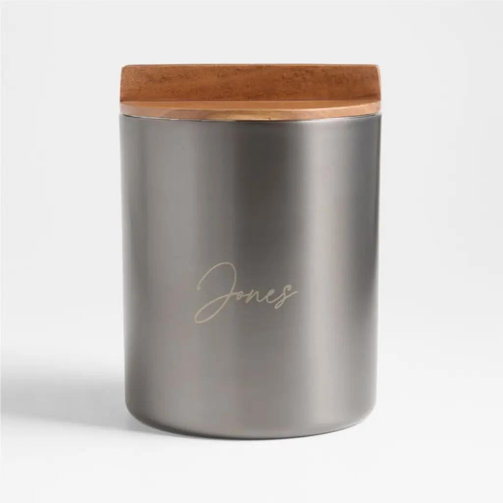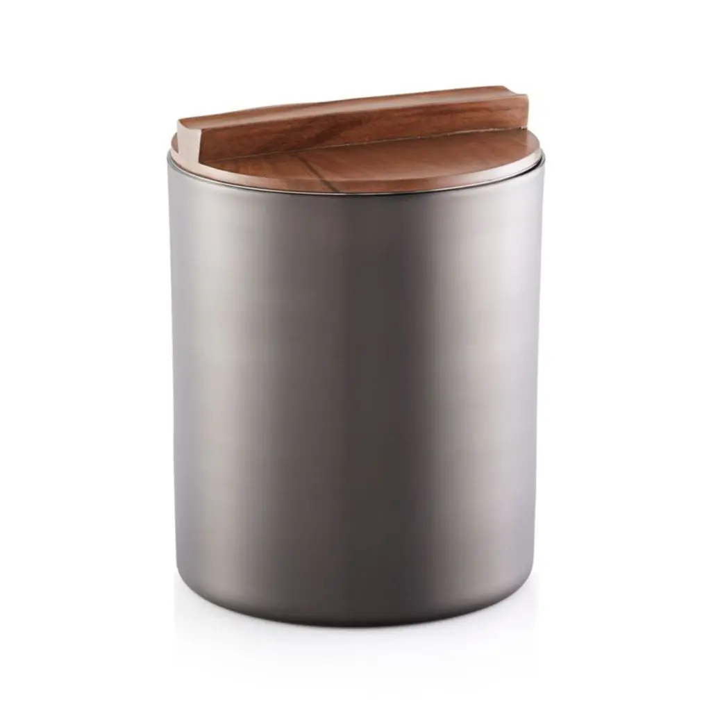 Recalling the simplicity and craftsmanship of colonial pewter, our Fenton ice bucket translates simple lines and straightforward function into a sleek, contemporary design with a sophisticated matte graphite finish and warm acacia wood lid. Double-walled construction keeps ice cold and reduces condensation.