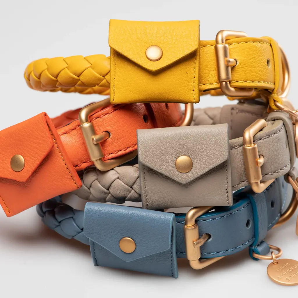 The equestrian world was the first inspiration when creating this line of collars and leashes. The purpose was to create a new shape that could match the sensational tactile features of a great material: Nappa leather. The shape was suggested by a horse-rider’s key fob we purchased a long time ago in Andalusia. We wanted elegant, yet playful, colors that could add a touch of Italian style to any dog-walking stroll. Like all other products, the Ferdinando collection of collars and leashes originates in the heart of Tuscany, the cradle of leather manufacture. Features