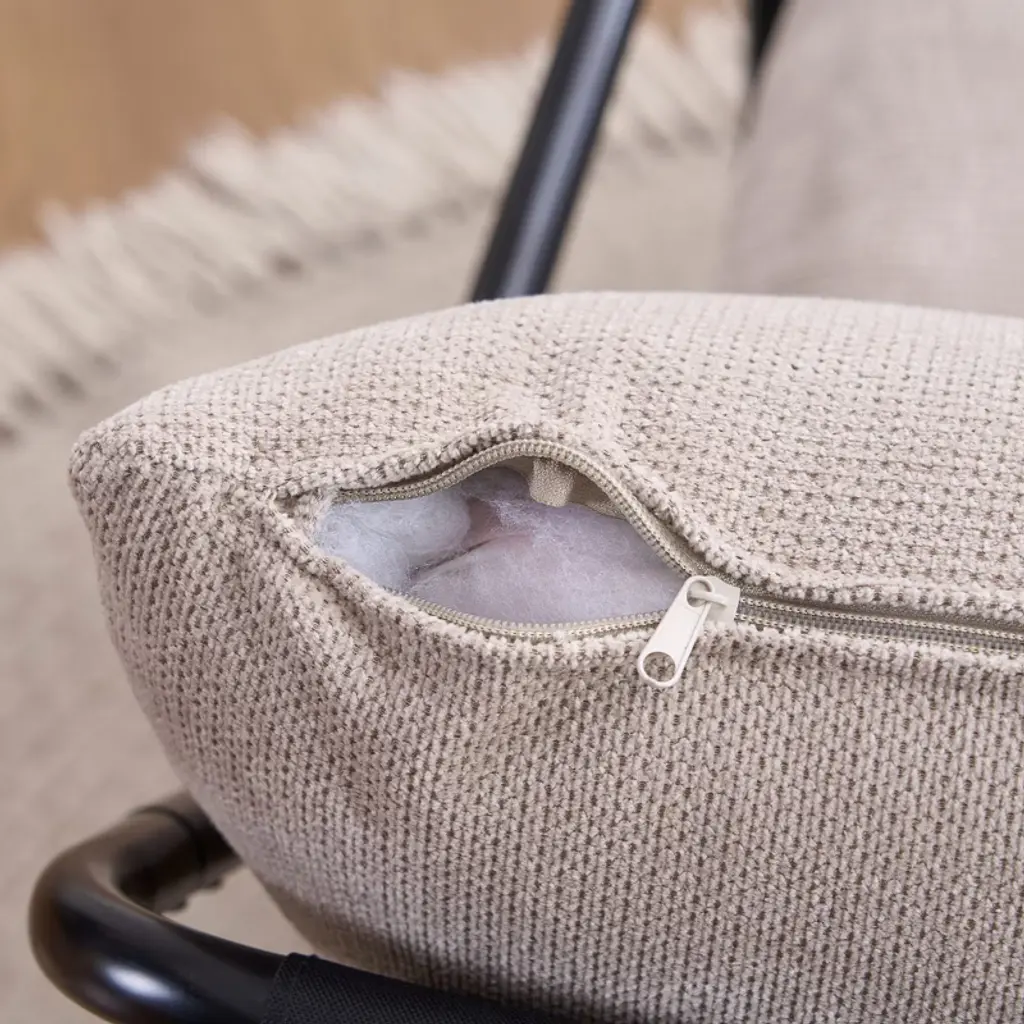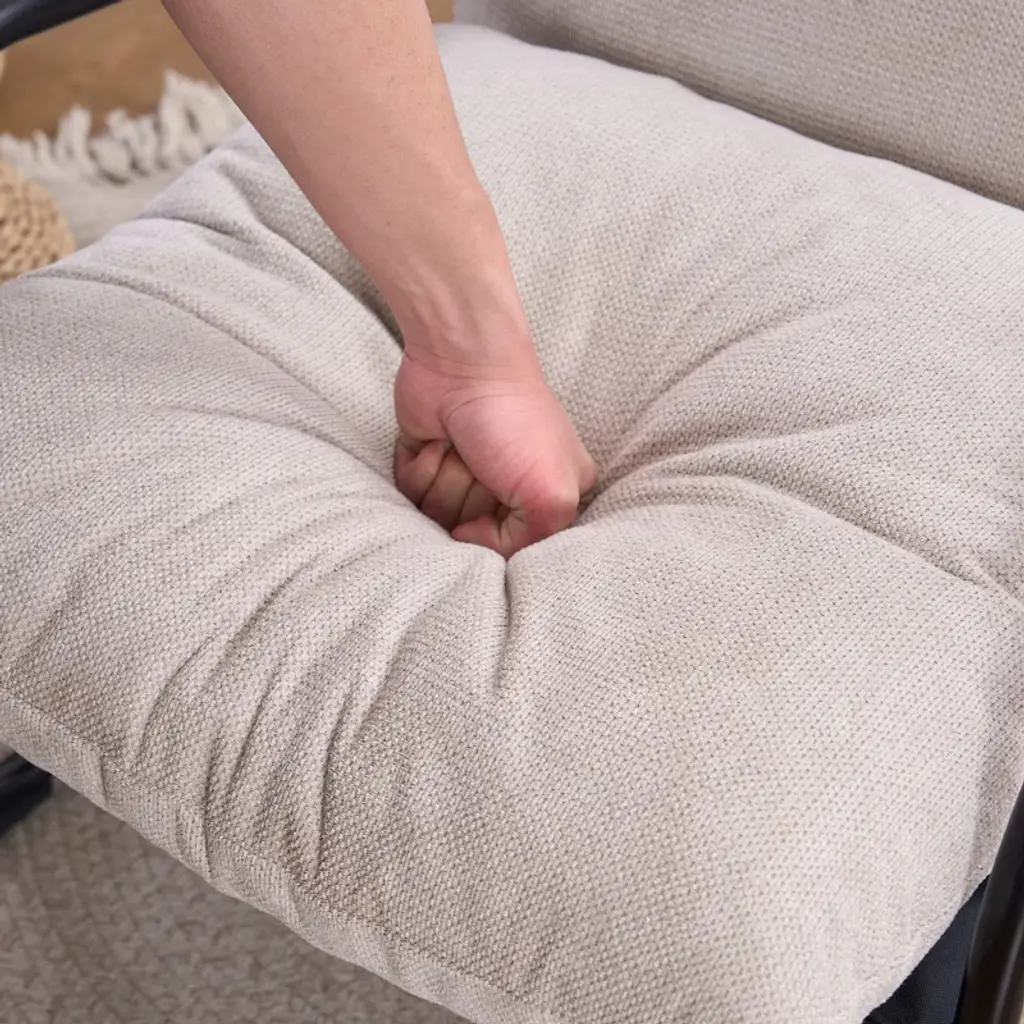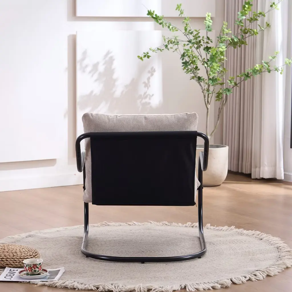 Upgrade your space with this modern arc-shaped lounge chair, combining minimalist design and everyday comfort. Featuring a sturdy iron frame with a gracefully curved silhouette, this chair adds sculptural elegance to any room. The seat and backrest are generously filled with high-density sponge and upholstered in breathable, textured linen fabric¡ªavailable in calming beige or refreshing green. Whether you're reading, relaxing, or entertaining guests, this accent chair provides supportive comfort and timeless style. Perfect for living rooms, bedrooms, or reading corners.