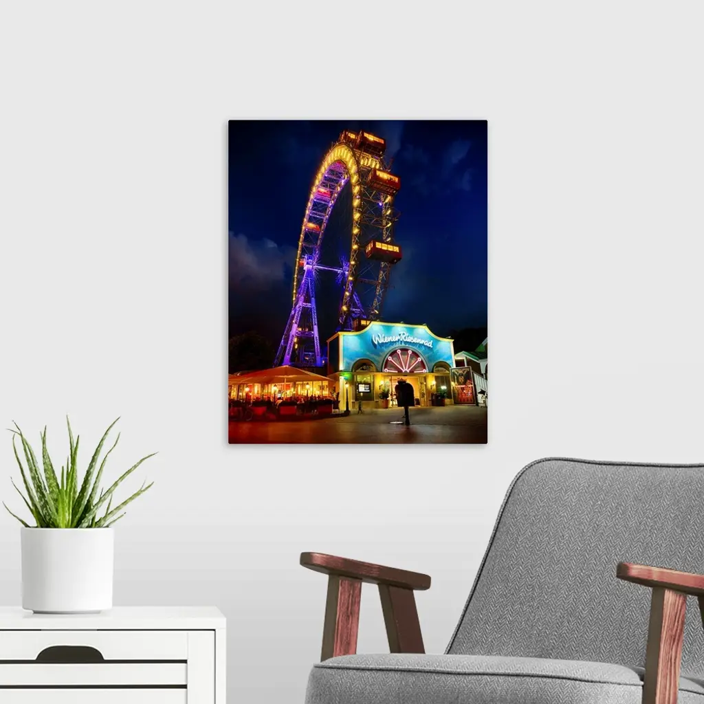 The Giant Ferris Wheel of Vienna at Night.