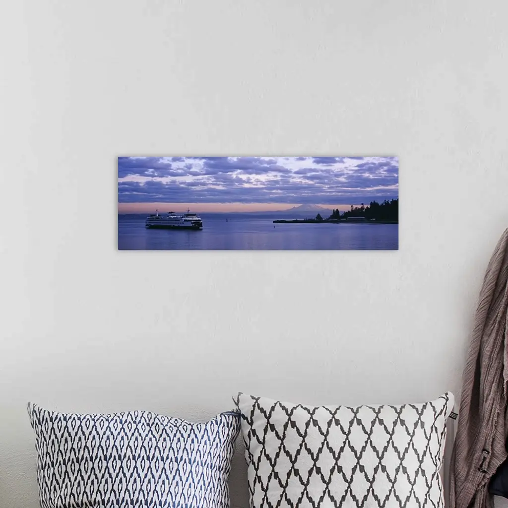 Ferry in the sea, Elliott bay, Puget Sound, Washington State wall art for home and office decor. Discover canvas art prints, photos, mural, big canvas art and framed wall art in GreatBigCanvas.com's varied collections.