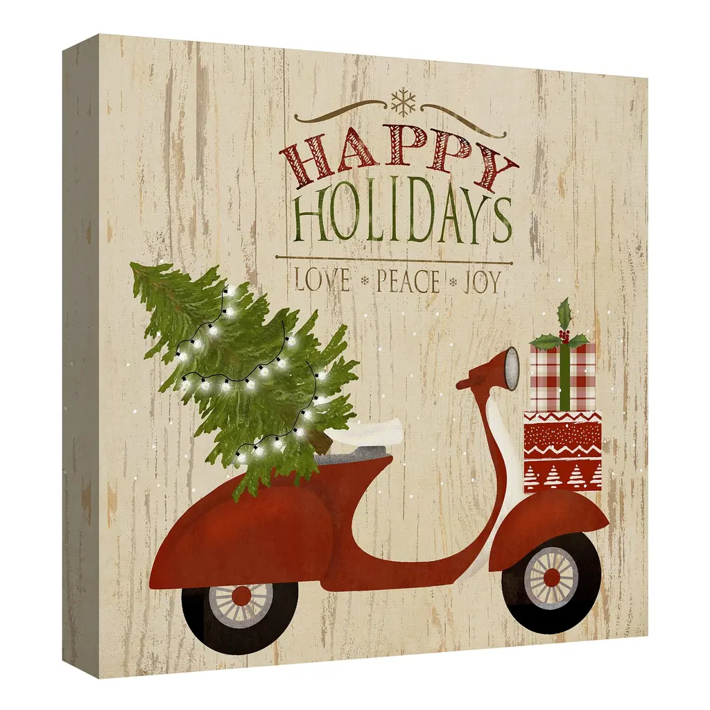 Festive Happy Holidays Gnome With Rustic Sled Detail30x30