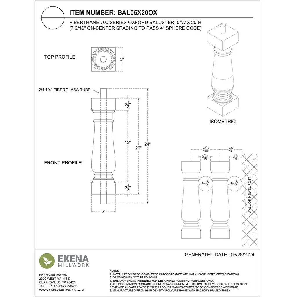 Fiberthane 700 Series Oxford Baluster, Factory Primed - 5"w X 20"h